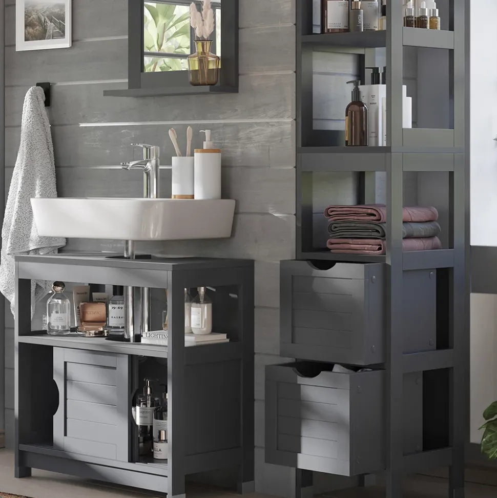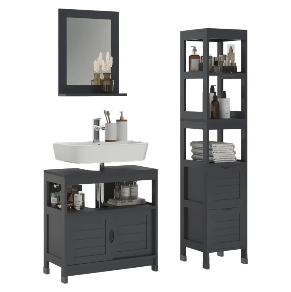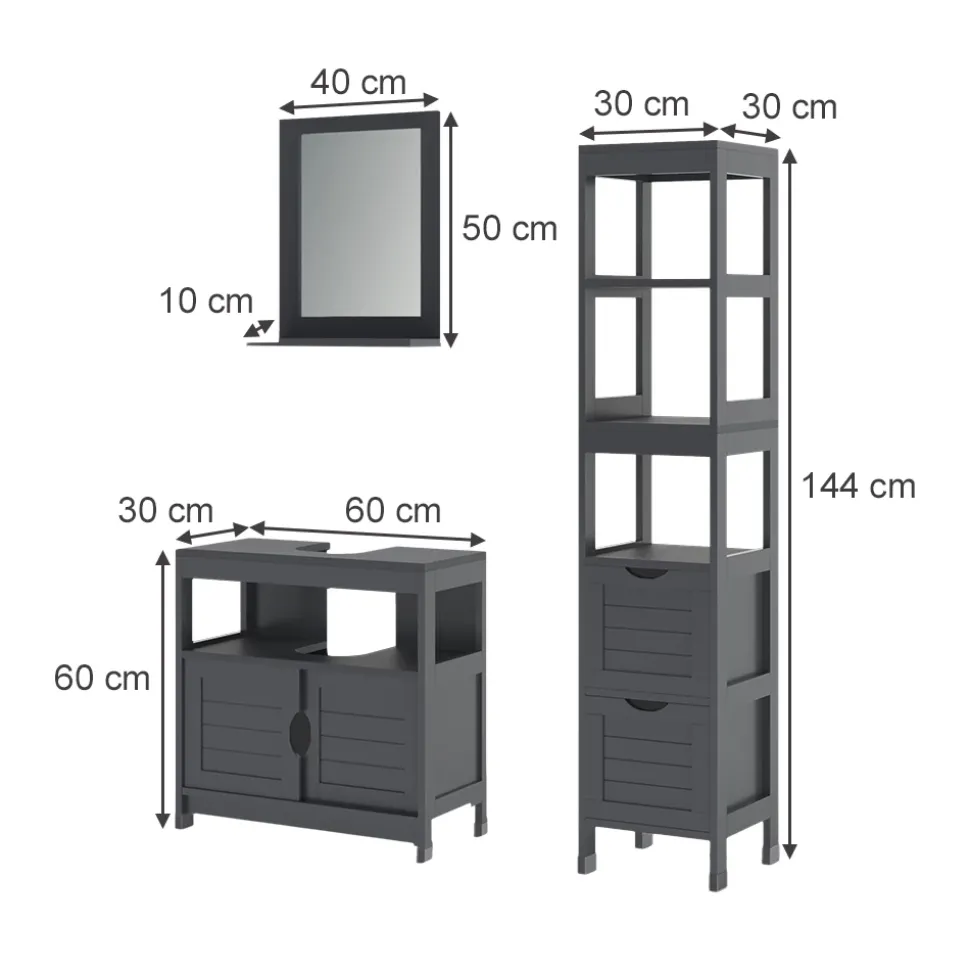 - Das Badezimmerschrank-Set bietet praktische Aufbewahrungslösungen und passt dank der hochwertigen Verarbeitung passt es perfekt in jedes Bad.