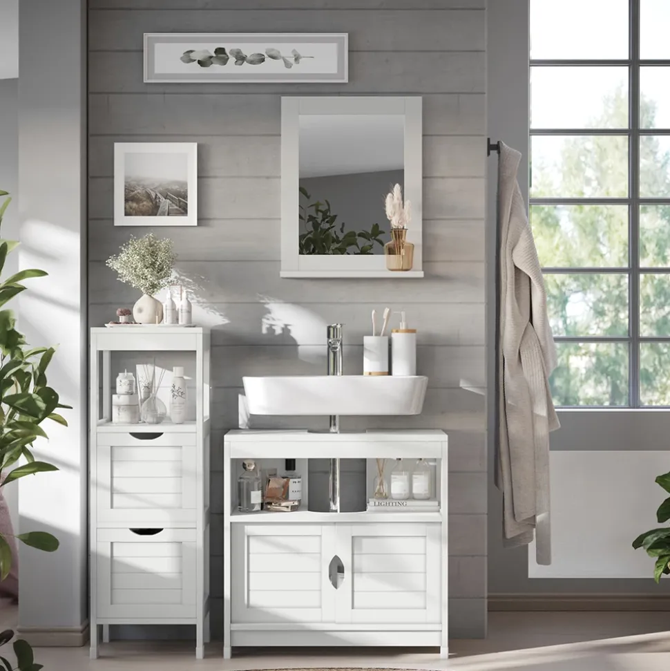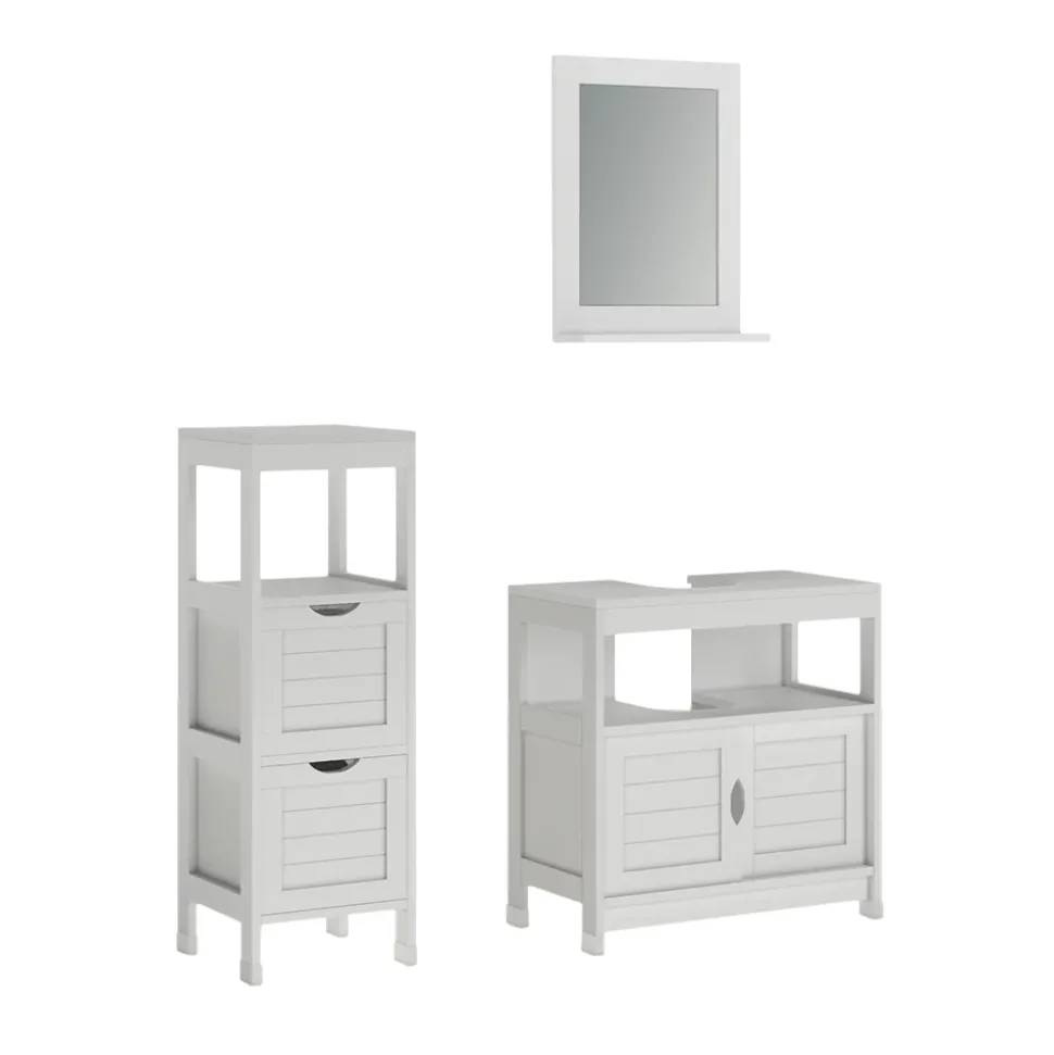 - LIEFERUMFANG: Waschbeckenunterschrank, Badezimmerspiegel, Midischrank, Montageanleitung, Montagematerial (Dekoration nicht enthalten)