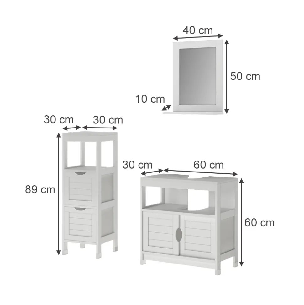 - MATERIAL: Das Badmöbel-Set besteht aus pflegeleichtem MDF, 12 mm.