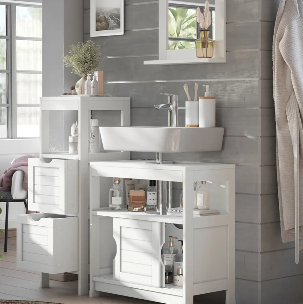 - Mit „Vilda“ ist das Set mit Waschbeckenunterschrank die optimale Lösung für jedes Badezimmer. Sein stilvolles Design passt in jede Wohnung.