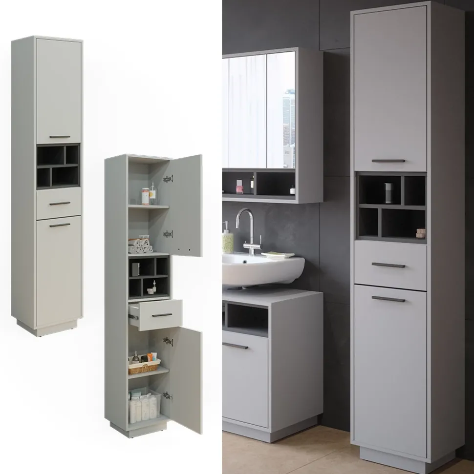 - Unser schmale Badezimmerschrank „Beatrice“ ist eine gute Entscheidung für Ihr Zuhause. Durch sein optimales Design passt er in jedes Bad.