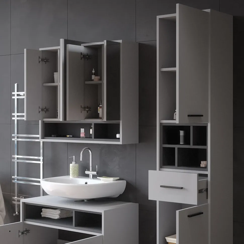 Unsere Badmöbelserie gibt es in vier unterschiedlichen Farbvarianten. Hoch modern und funktional kann man bei den Farben zwischen Anthrazit, Weiß, Artisan-Eiche und Grau wählen, welche jeweils mit edlen Eiche – oder Anthrazit-Einschüben ergänzt sind. Diese Design-Highlights werden sich hervorragend in jedes Bad einfügen und machen es zu einem Hingucker in jedem Zuhause.