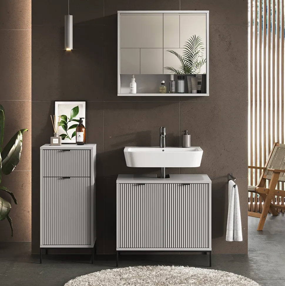 Die vielseitige Möbelserie „Eliza“ bietet stilvolle Badezimmerschränke und -sets, Nachttische, Couchtische und Kommoden. Mit ihrem modernen Design und hochwertigen Materialien schafft „Eliza“ sowohl im Badezimmer als auch im Wohnbereich eine funktionale und ästhetische Umgebung.