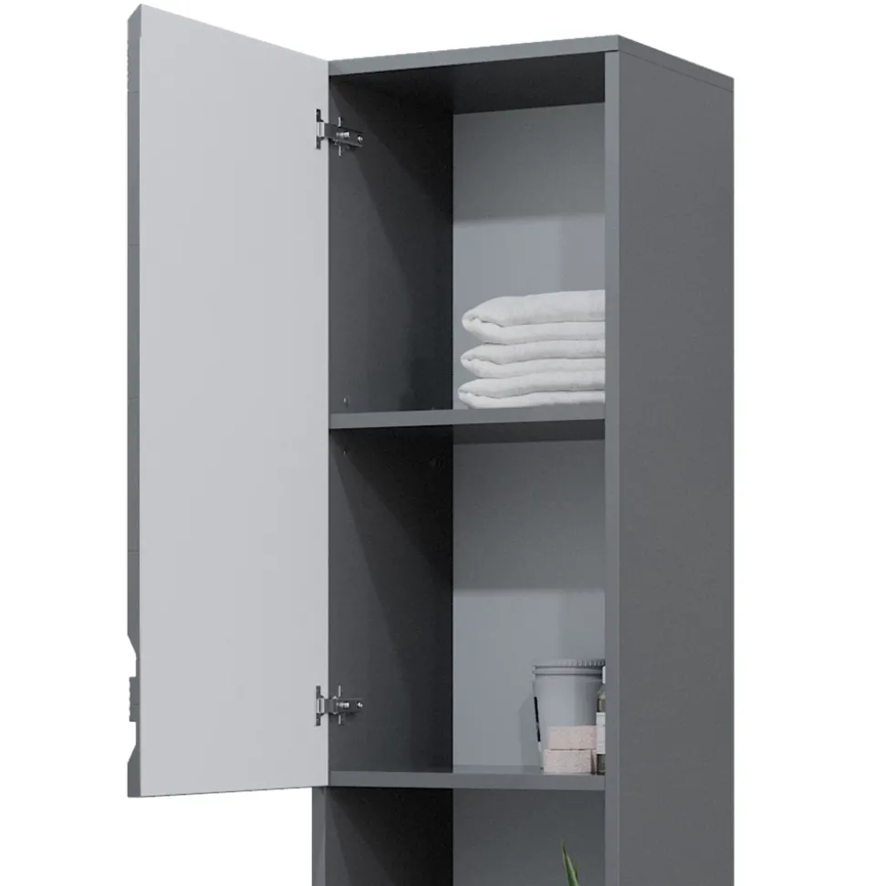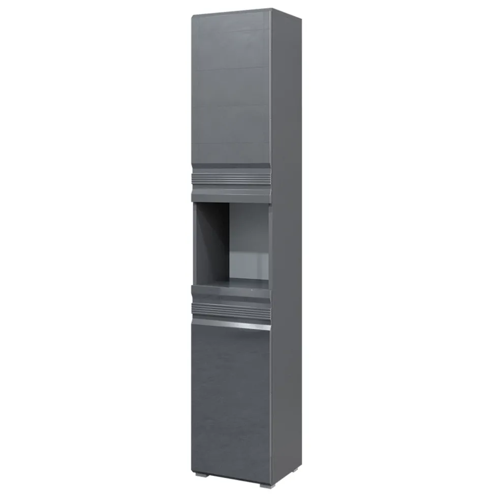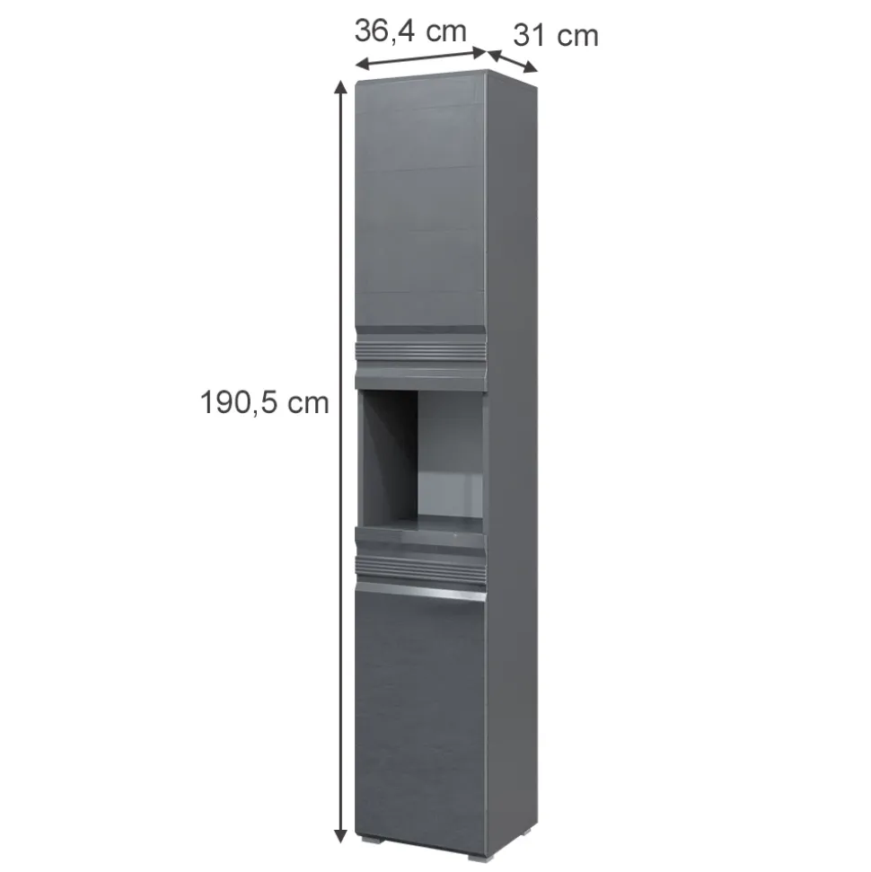 - Der Badezimmerhochschrank bietet mit einem offenen Fach und zwei Türen viel Stauraum für Badezimmerutensilien.