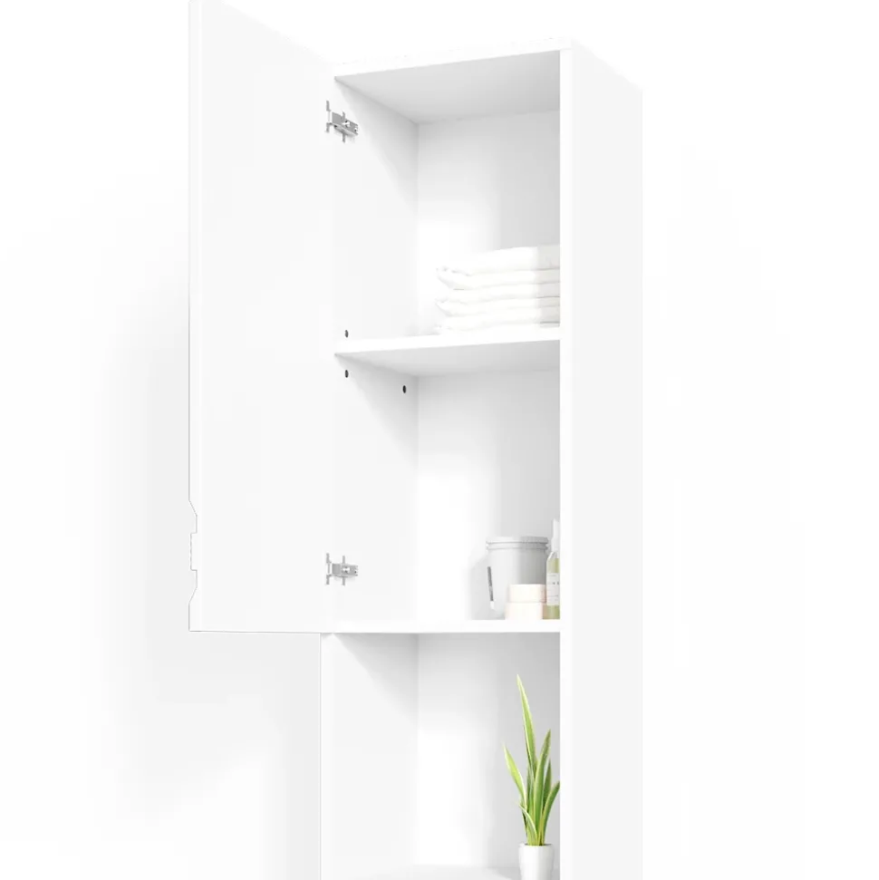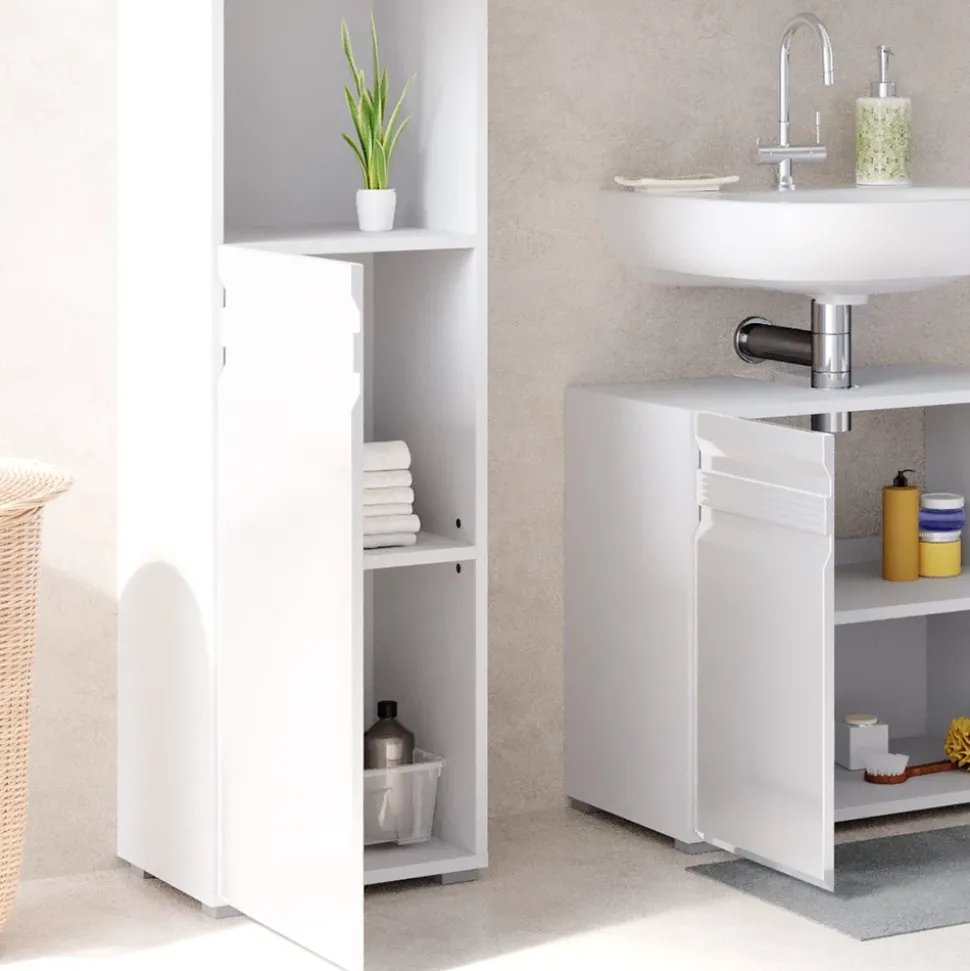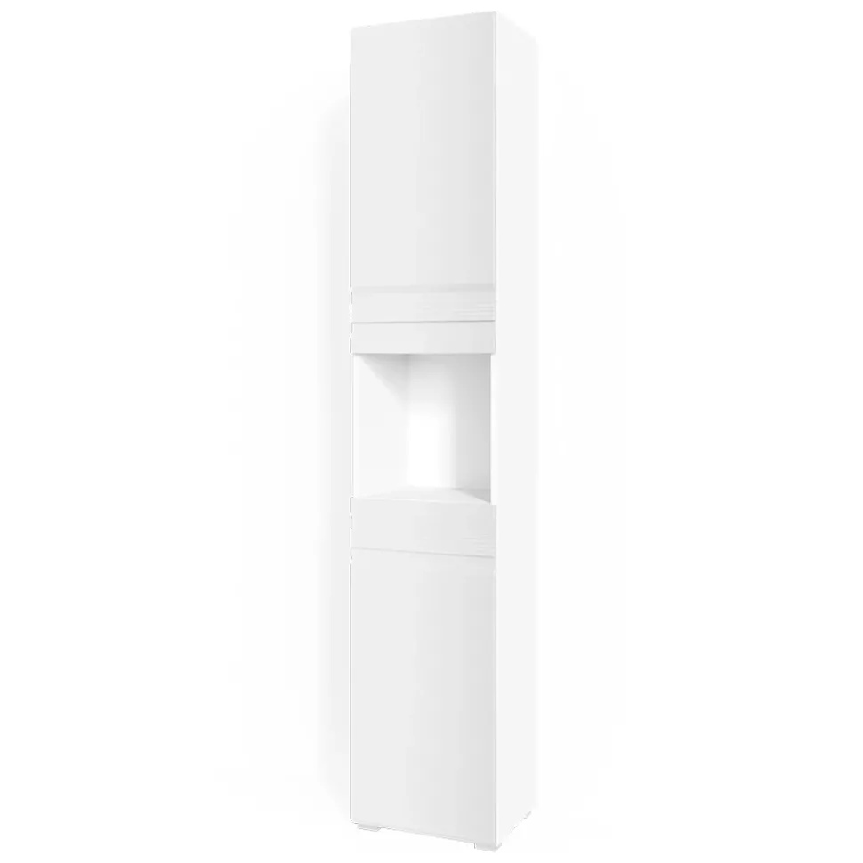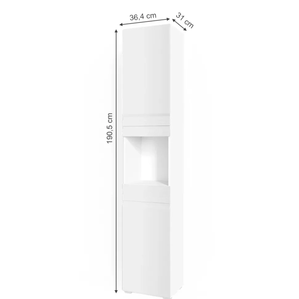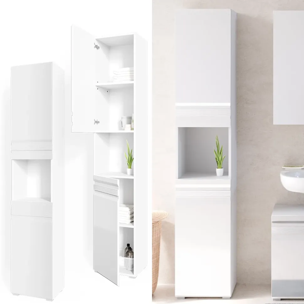 - Der Badezimmerhochschrank bietet mit einem offenen Fach und zwei Türen viel Stauraum für Badezimmerutensilien.
