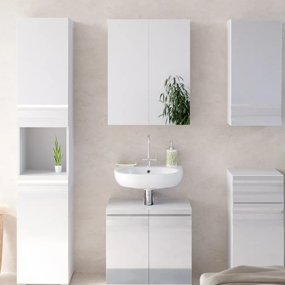 Der Badschrank Fredd ist die perfekte Ergänzung für jedes Badezimmer. Mit seinem originellen Design und der Grifflosen Front ist er nicht nur ein Blickfang, sondern bietet auch viel Stauraum für Ihre Badutensilien. Der Schrank verfügt über ein offenes Fach und zwei Türen, hinter denen sich insgesamt fünf Fächer befinden. Durch die hohe Kompatibilität mit anderen Artikeln der Fredd-Kollektion lässt sich der Schrank wunderbar in jedes Badezimmer integrieren. Dieser Badezimmer Hochschrank wird Ihnen viele Jahre Freude bereiten und Ihren Alltag erleichtern. Schaffen Sie sich ein schönes Bad mit Fredd!