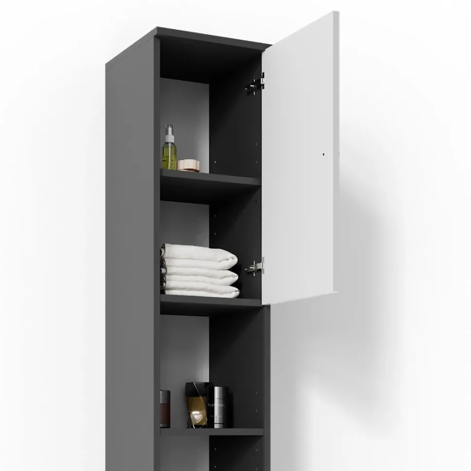 Geben Sie Ihrem Badezimmer mit dem Fynn Badschrank ein modernes Upgrade! Dieser schmale Hochschrank bietet mit offenen und geschlossenen Ablagefächern reichlich Stauraum für all Ihre Badezimmerutensilien und hält sie jederzeit griffbereit. Das minimalistische Design passt perfekt zu jedem Einrichtungsstil und ist kompatibel mit anderen Produkten der Fynn Kollektion. Doch der Badschrank ist nicht nur funktional, sondern beeindruckt auch mit seinem zeitlosen Look. Zudem ist er eine großartige Möglichkeit, um Ordnung in Ihr Badezimmer zu bringen und ein Gefühl von Ruhe und Entspannung zu erzeugen. Gönnen Sie sich den Badschrank Fynn und schaffen Sie ein stilvolles und organisiertes Badezimmer.