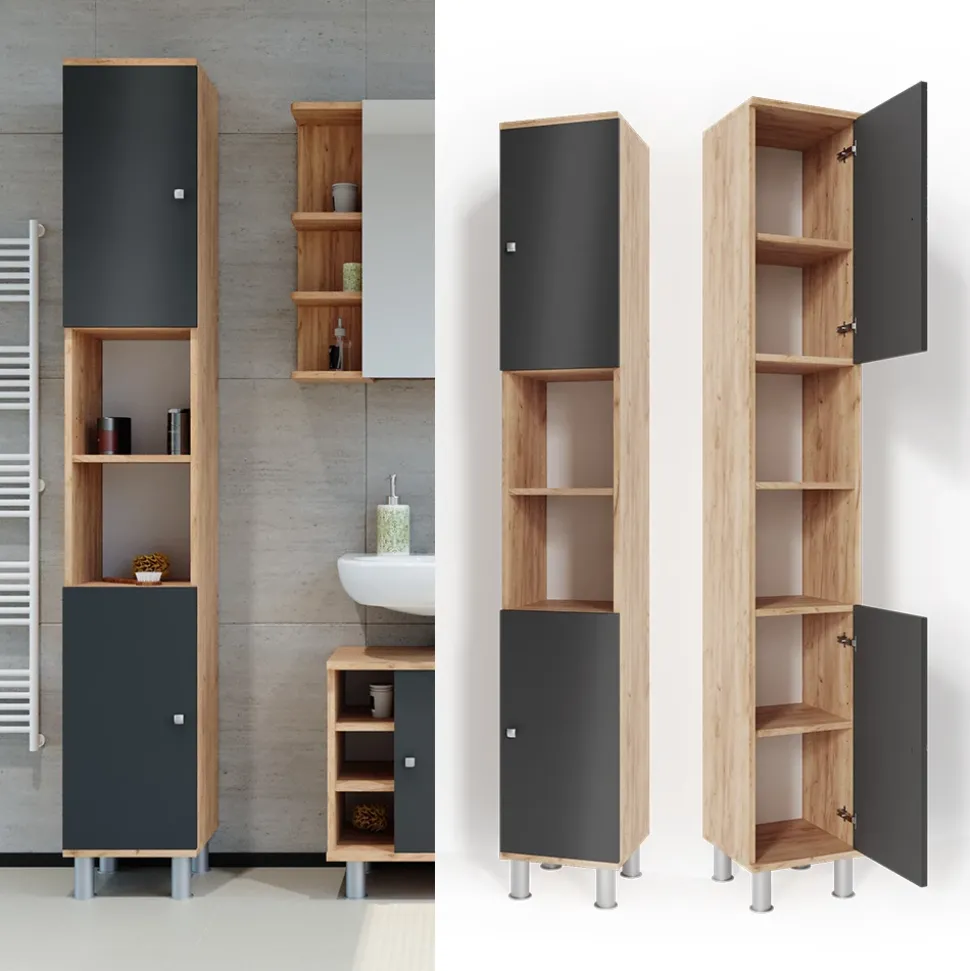 - Unser schmale Badezimmerschrank „Fynn“ ist eine gute Entscheidung für jedes Haus. Mit optimalem Design bietet er Freude an der Benutzung.