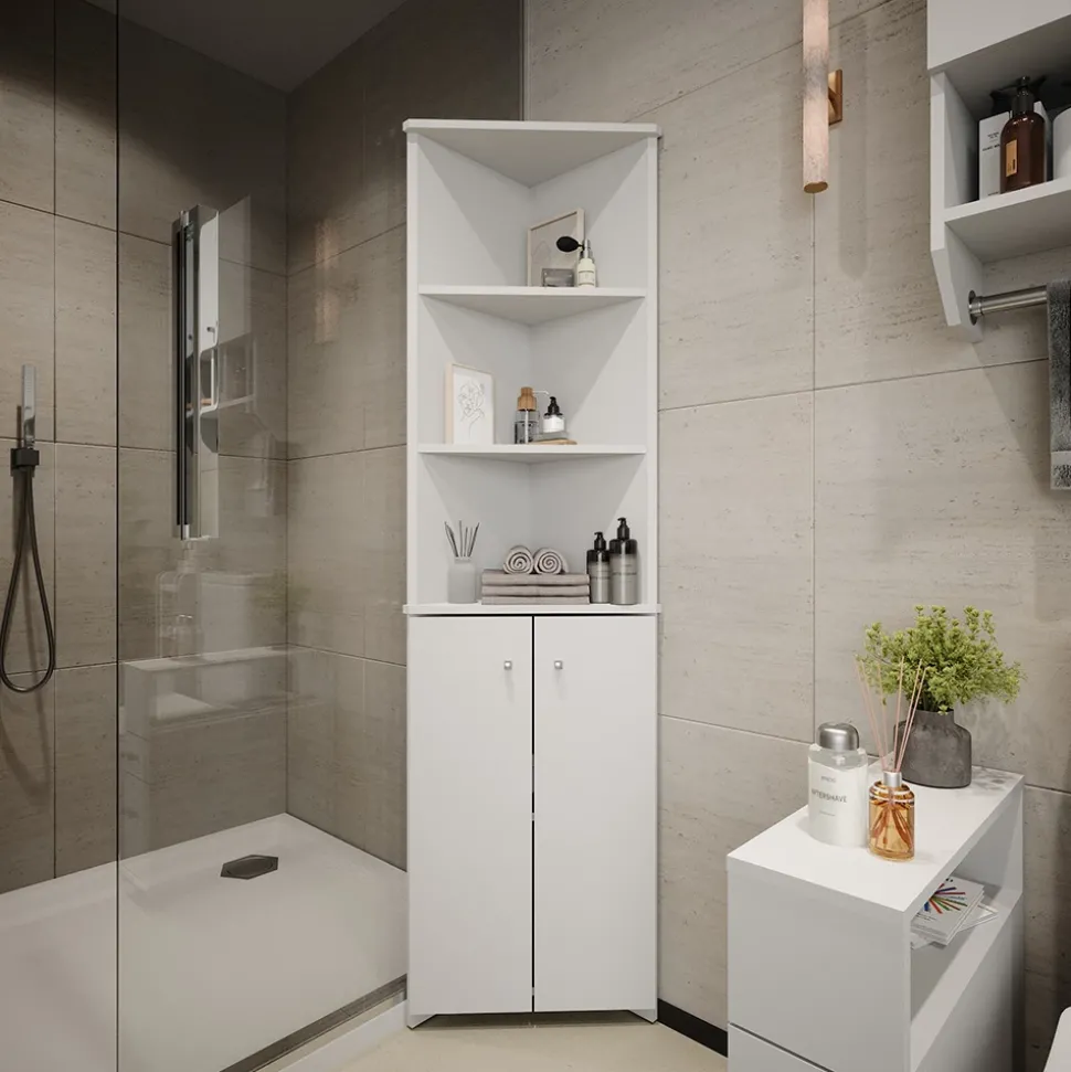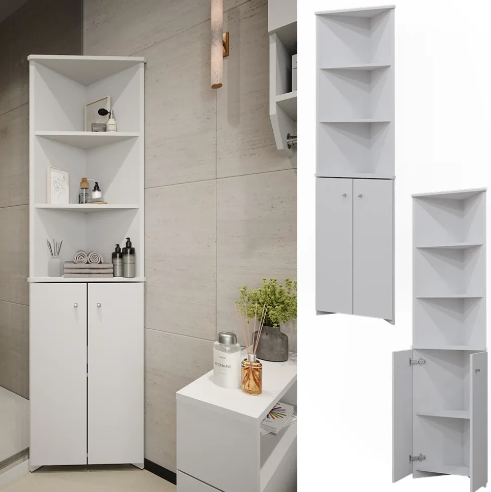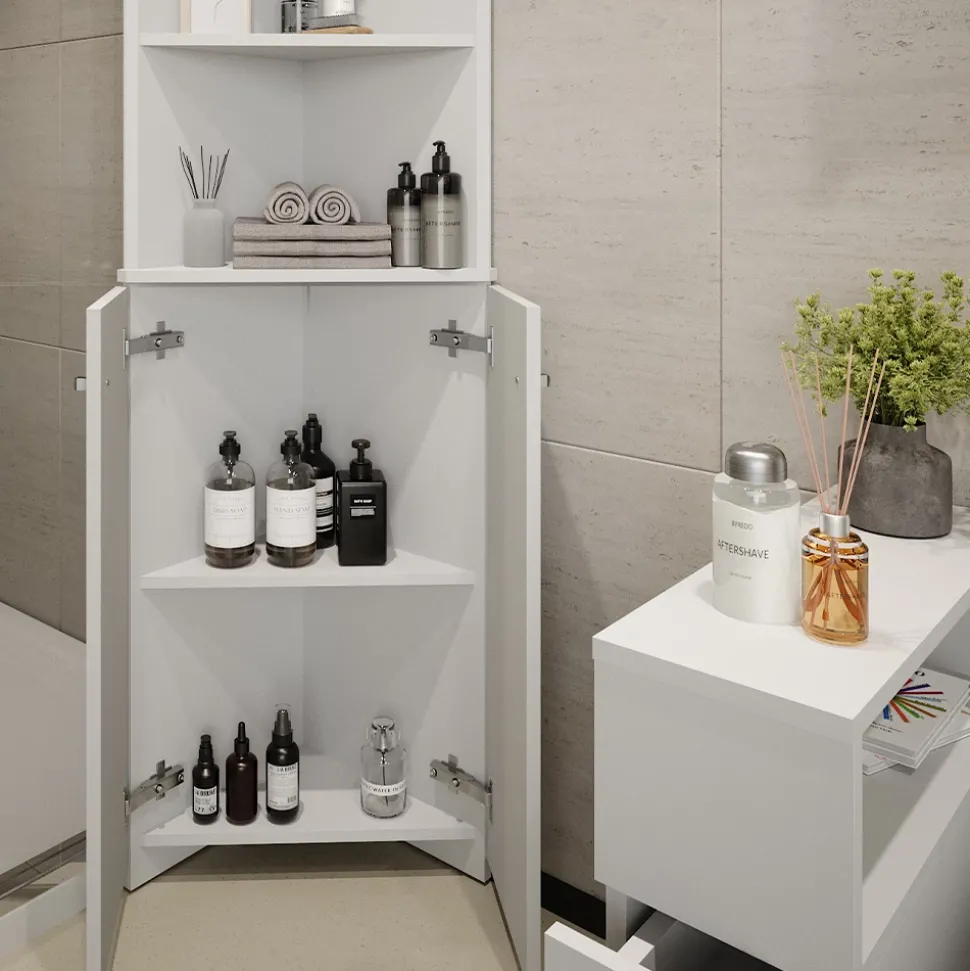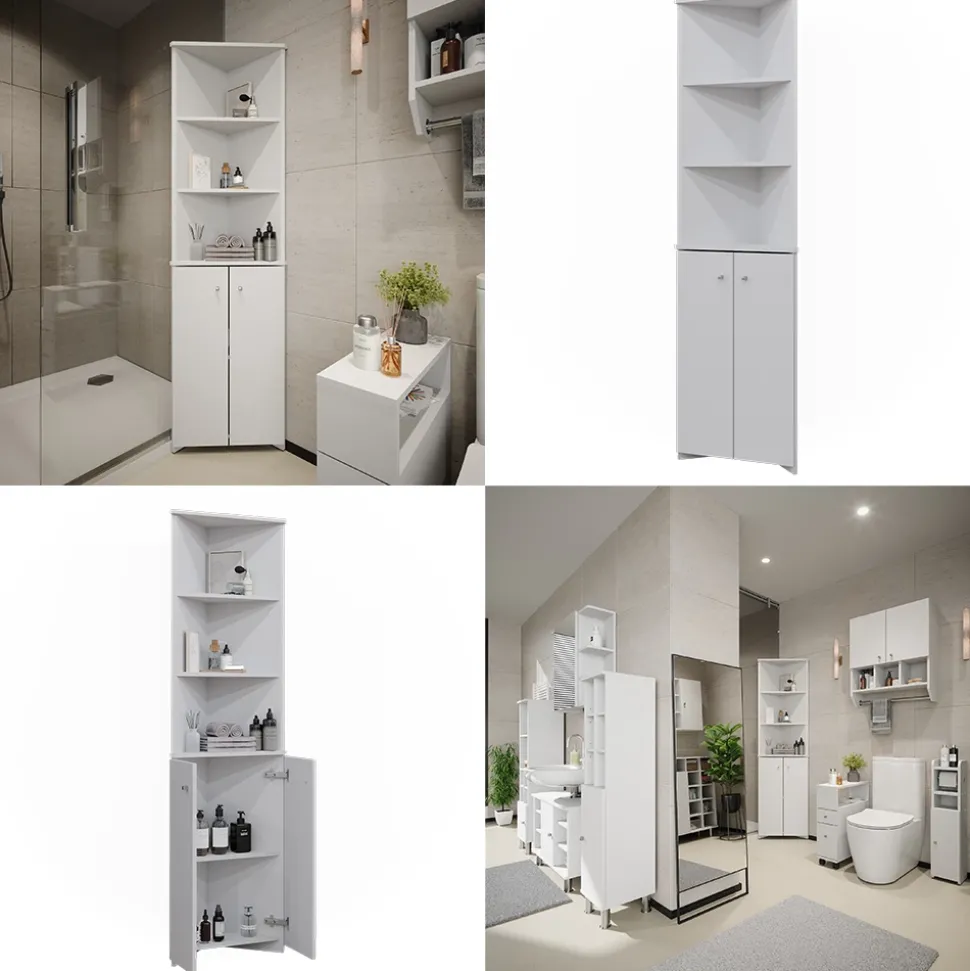 - Der Badschrank verfügt über 2 Türen und 3 Fächer, um Platz zu sparen. Der Eckschrank ist ideal für eine ungenutzte Ecke in Ihrem Badezimmer.