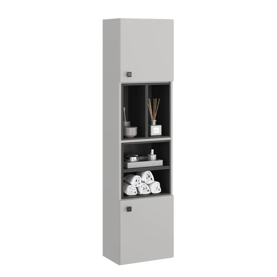 - Der Vicco Hängeschrank Gerta in Grau-Schwarz ist ein Badezimmerhängeschrank im modernen Design. Dieses hängende Badregal erhalten Sie mit zwei herausnehmbaren Ablagen.