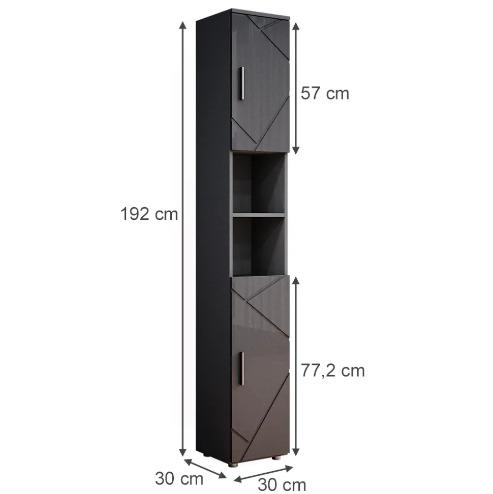 - MAßE: Der Wäscheschrank hat eine Breite von 30 cm, eine Höhe von 192 cm und eine Tiefe von 30 cm. Alle detaillierten Größen sind auf den Fotos angegeben.