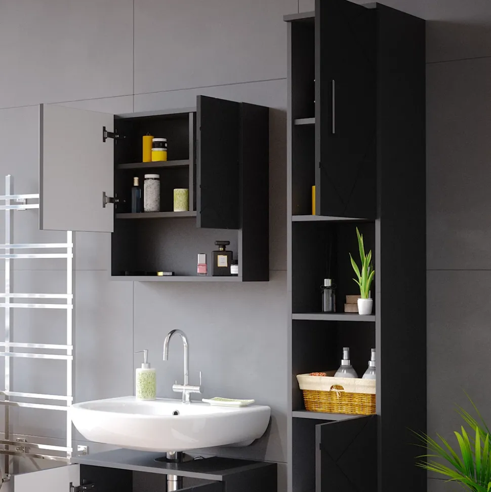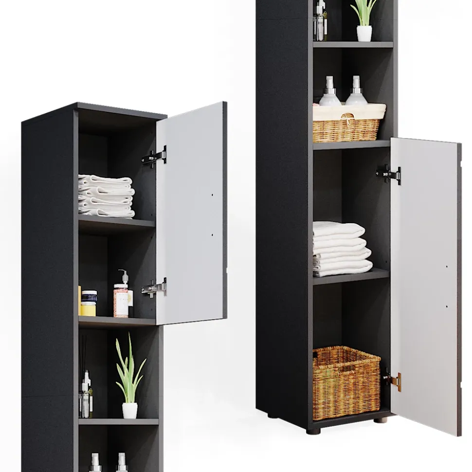 - Ein schmaler Badezimmerschrank wie „Irma“ ist eine gute Entscheidung für platzbeschränkte Räume.