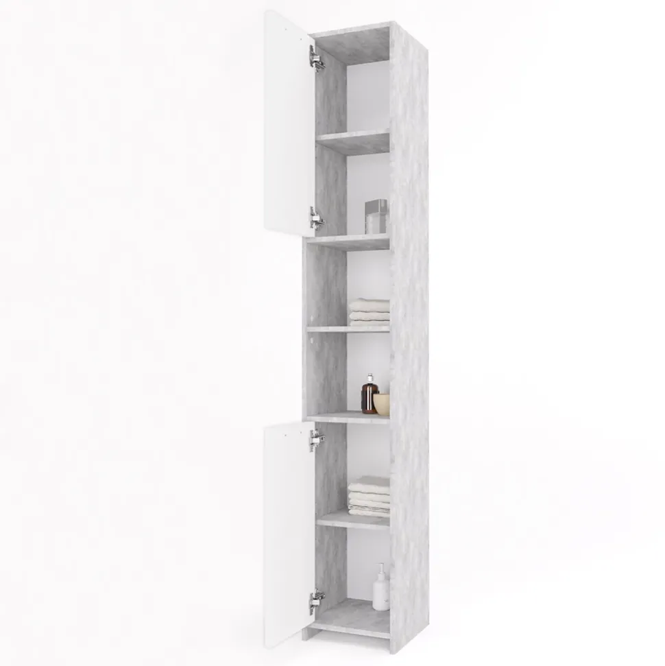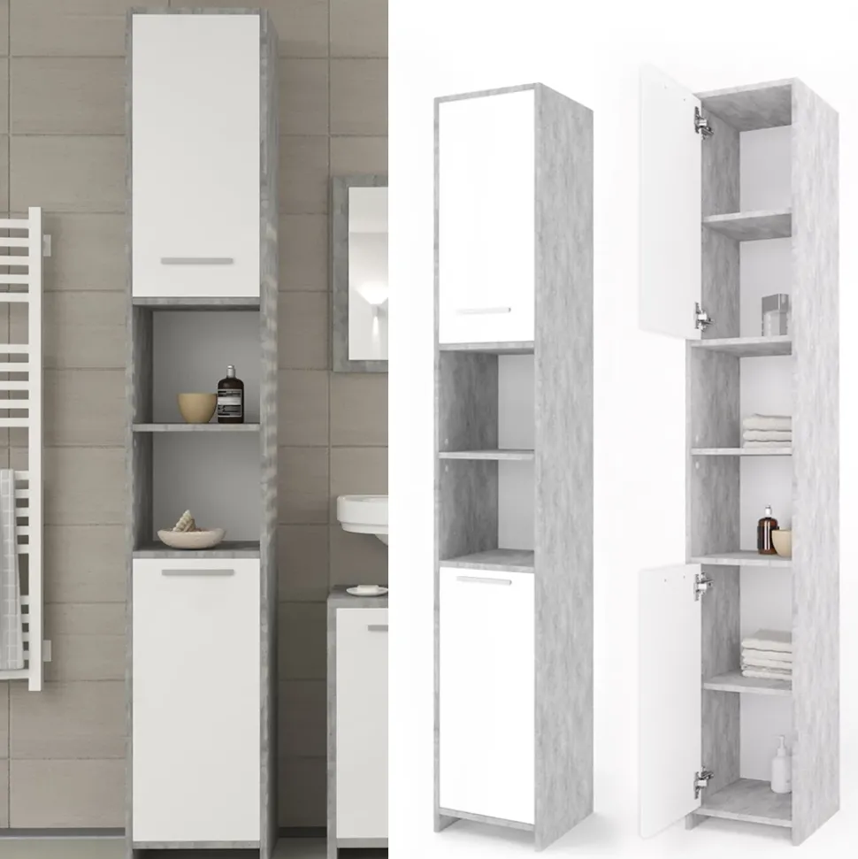 Der Badschrank Kiko ist ein diskret gestaltetes Möbelstück, das für Ordnung und Stil im Badezimmer sorgt. Mit seinen zwei offenen Fächern und zwei Türen bietet er viel Stauraum für Handtücher, Kosmetik und andere Badutensilien. Ein großer Vorteil des Kiko-Schranks ist, dass die Richtung der Türöffnung umgekehrt werden kann, was ihn besonders flexibel in der Raumgestaltung macht. Die sechs Einlegeböden können individuell positioniert werden und bieten somit Platz für eine Vielzahl von Gegenständen. Der Kiko Badschrank harmoniert perfekt mit anderen Möbelstücken der Kiko-Kollektion und schafft so eine einheitliche Atmosphäre im Badezimmer. Investieren Sie in den Kiko Badschrank und schaffen Sie mit ihm eine geordnete und stilvolle Umgebung, in der Sie sich wohl fühlen.