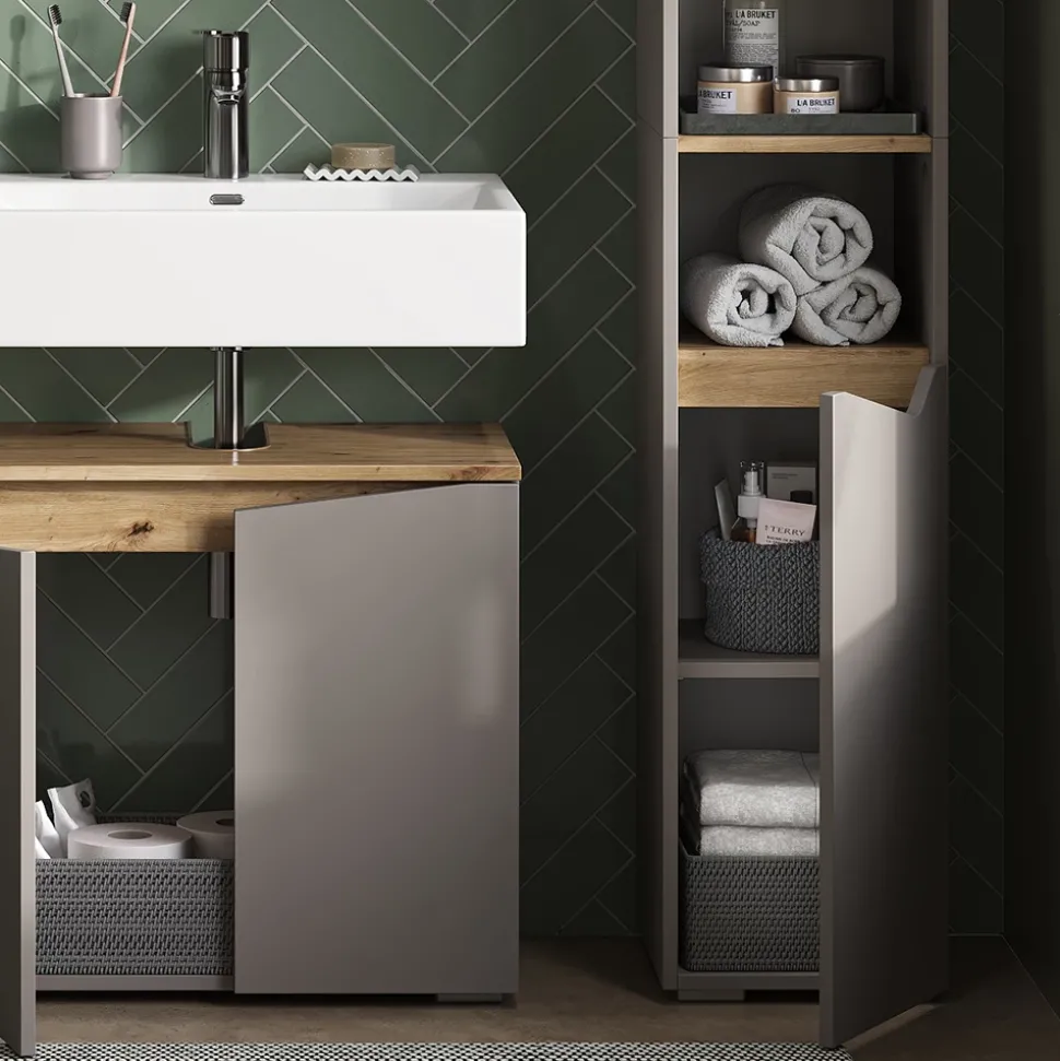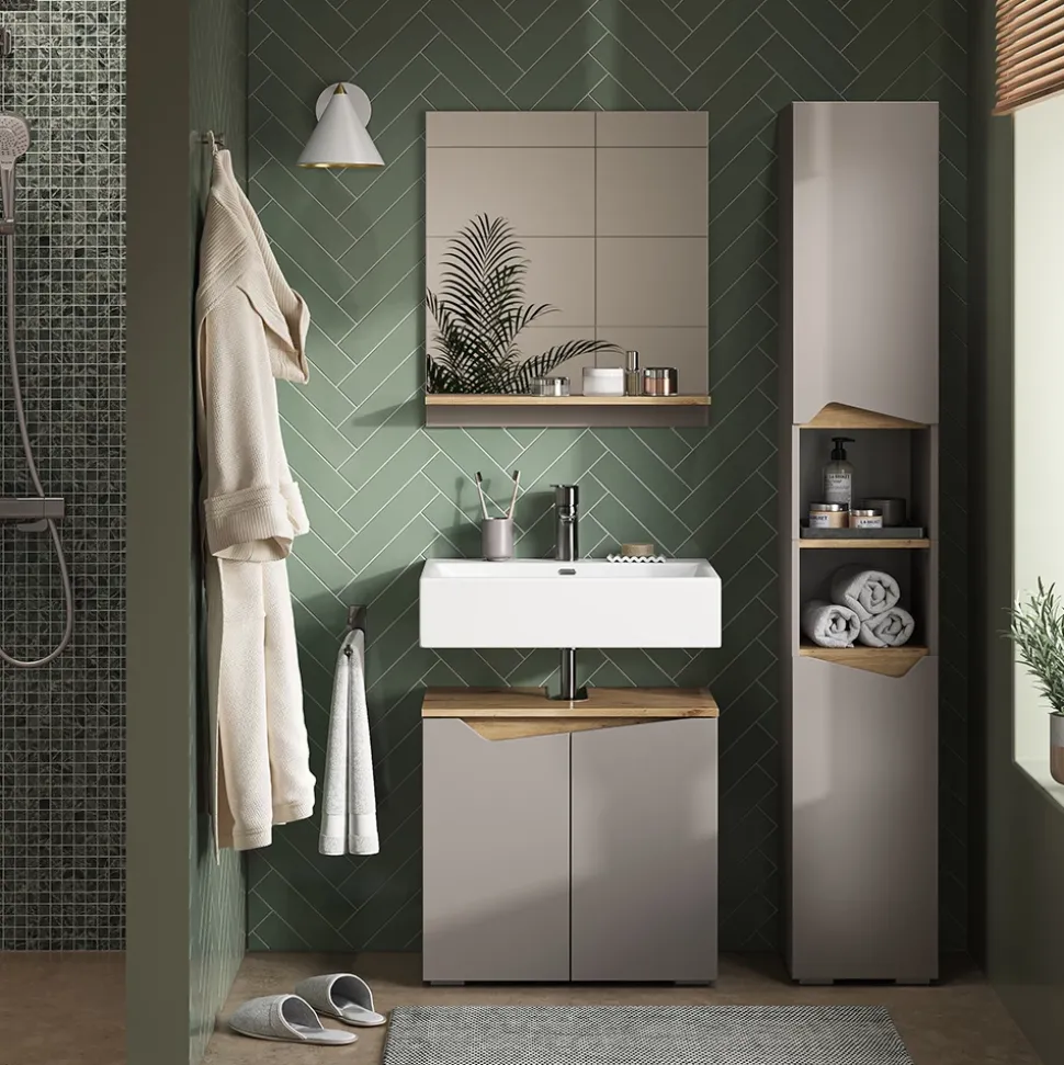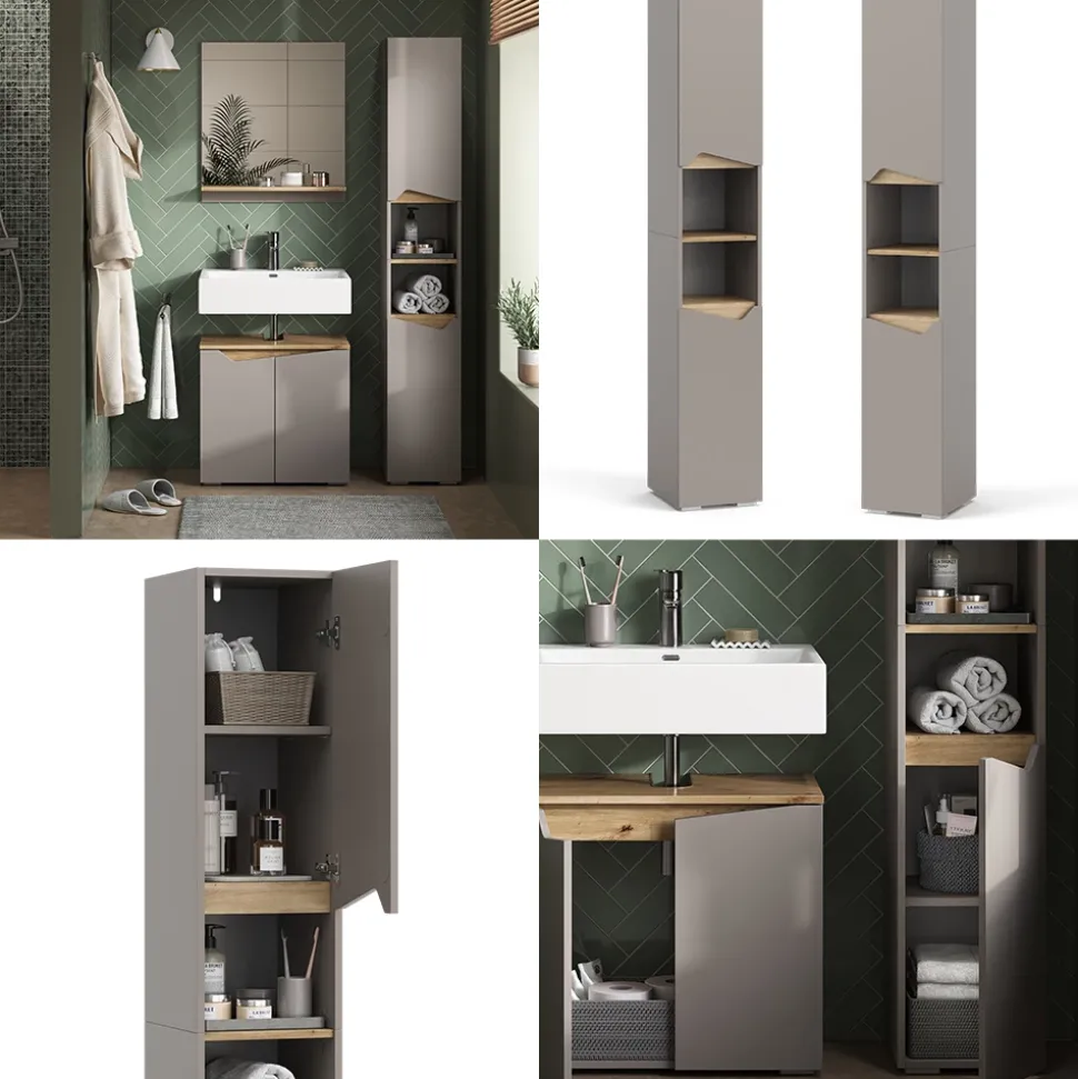Die Möbelserie „Marelle“ bietet stilvolle Badezimmerschränke und -sets, die mit ihrem zeitgemäßen Design und hochwertigen Materialien eine elegante Lösung für die Einrichtung Ihres Badezimmers bieten. Mit „Marelle“ schaffen Sie eine funktionale und ästhetische Umgebung für Ihre tägliche Pflegeroutine im Bad.
