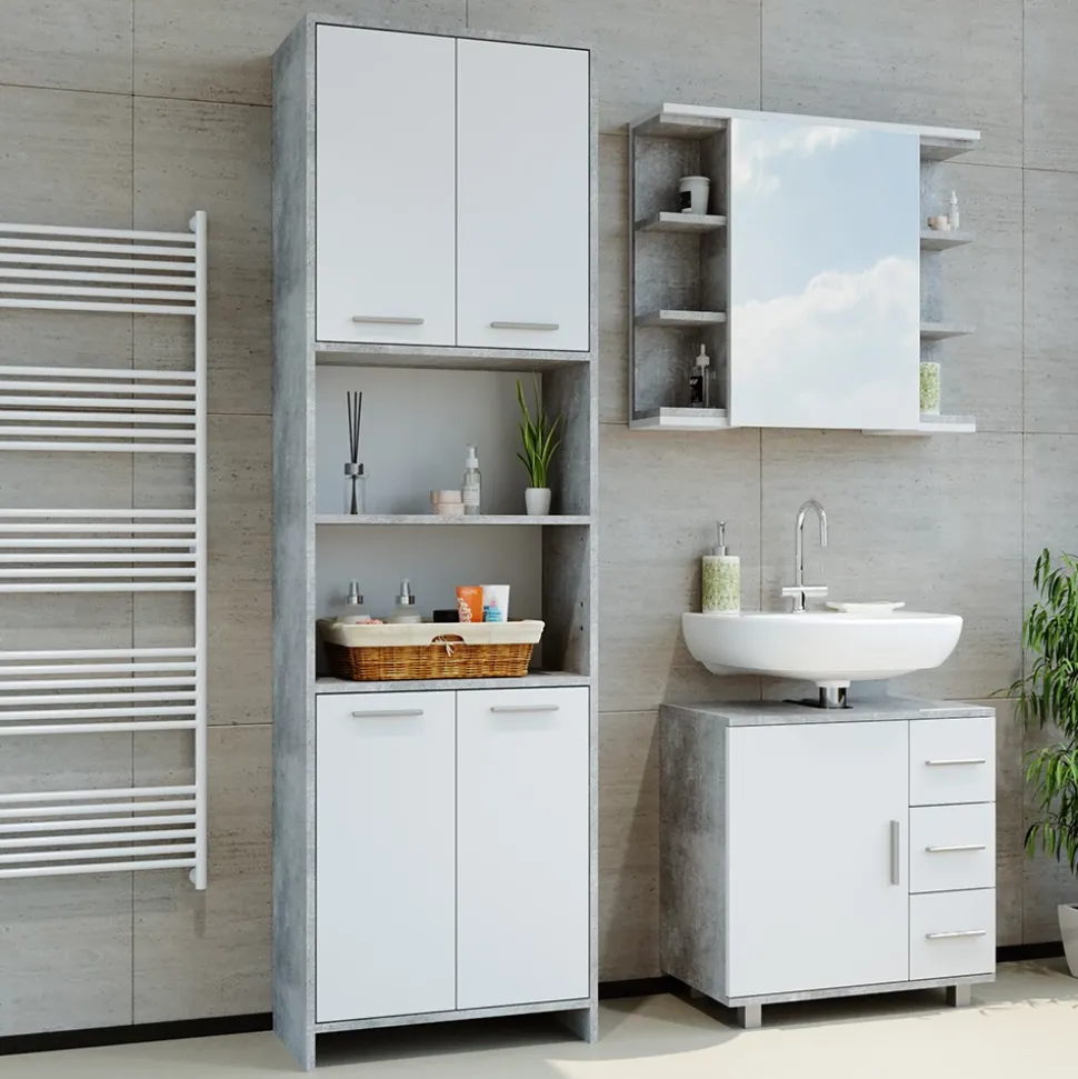 „Maris“ ist eine Möbelserie, die hohe Badezimmerschränke in verschiedenen Farbkombinationen anbietet. Die Serie bietet ausreichend Stauraum für Ihre Badutensilien und ermöglicht es Ihnen, Ihr Badezimmer ordentlich und stilvoll zu organisieren.