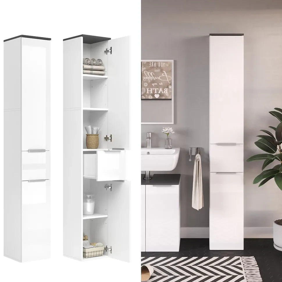 - Mit dem schmalen Badezimmerschrank „Otis“ treffen Sie eine gute Entscheidung für optimales Design in jedem Haus.
