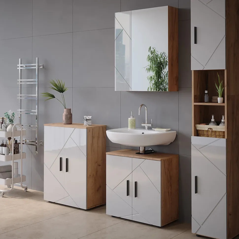 „Irma“ ist eine Möbelserie, die sowohl Badezimmer- als auch Schlafzimmermöbel sowie Schminktische umfasst. Mit vielen Farbkombinationen und Optionen für einzelne Einheiten und Sets bietet sie vielseitige Möglichkeiten. Die Fronten bestehen aus MDF.