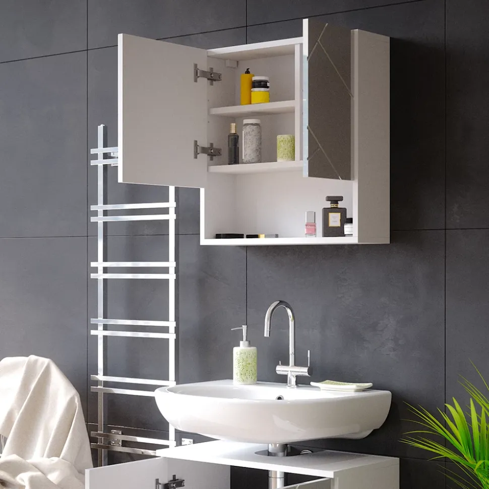 Der Irma Bad Spiegelschrank ist ein platzsparender Badezimmerschrank, der mit seinem innovativen Design überzeugt. Er bietet offene und geschlossene Ablagefächer sowie reichlich Stauraum und ist kompatibel mit anderen Produkten der Kollektion Irma. Dieser Schrank ist die perfekte Lösung für alle, die nach einer eleganten und praktischen Lösung für ihr Badezimmer suchen.