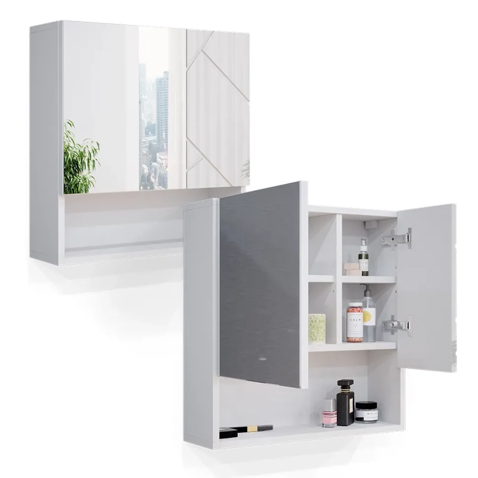 - MATERIAL: Der Badezimmer-Spiegelschrank besteht aus pflegeleichter Spanplatte 16 mm, mit einer Melaminharzbeschichtung. Einige Bestandteile des Artikels sind aus Glas gefertigt