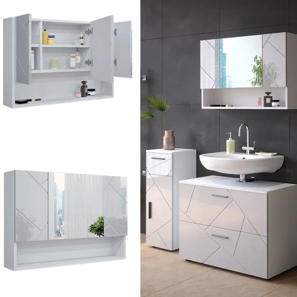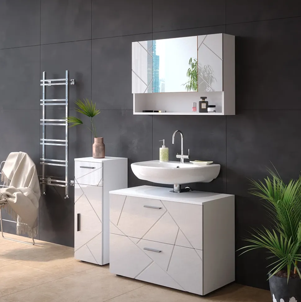 Der Bad Spiegelschrank Irma ist ein Muss für jedes Badezimmer. Mit seinen vielseitigen Funktionen ist er der perfekte Begleiter für Ihre täglichen Pflege-Rituale. Mit einem geräumigen Schrankbereich und einer großzügigen Ablagefläche bietet er genügend Platz für Ihre Bad-Accessoires und Utensilien. Ob beim Schminken, Rasieren oder Zähneputzen – der Badezimmerspiegel Schrank überzeugt durch seine klare Spiegeloberfläche und das praktische Design. Entspannen Sie sich während der morgendlichen Routine und fühlen Sie sich gut vorbereitet auf den Tag. Der Irma Spiegelschrank ist ein Blickfang in Ihrem Bad und vermittelt einen Hauch von Eleganz und Stil. Gönnen Sie sich den Luxus und verwandeln Sie Ihr Badezimmer in eine Wohlfühloase mit dem Bad Spiegelschrank Irma.