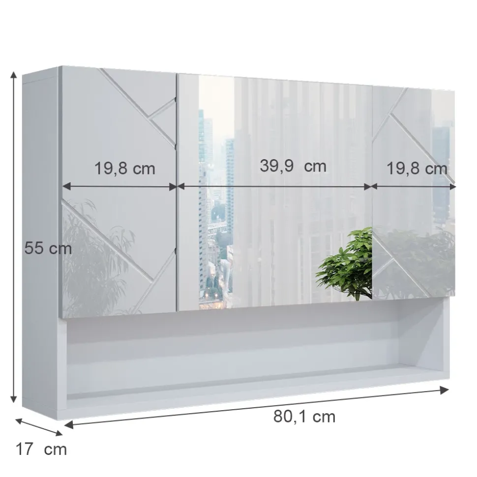 - MAßE: Der Badezimmerschrank mit Spiegel hat eine Breite von 80 cm, eine Höhe von 55 cm und eine Tiefe von 17 cm. Alle detaillierten Größen sind auf den Fotos angegeben.