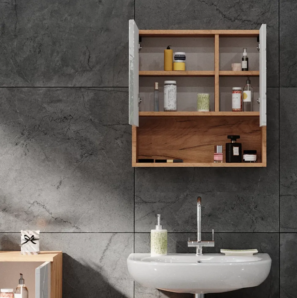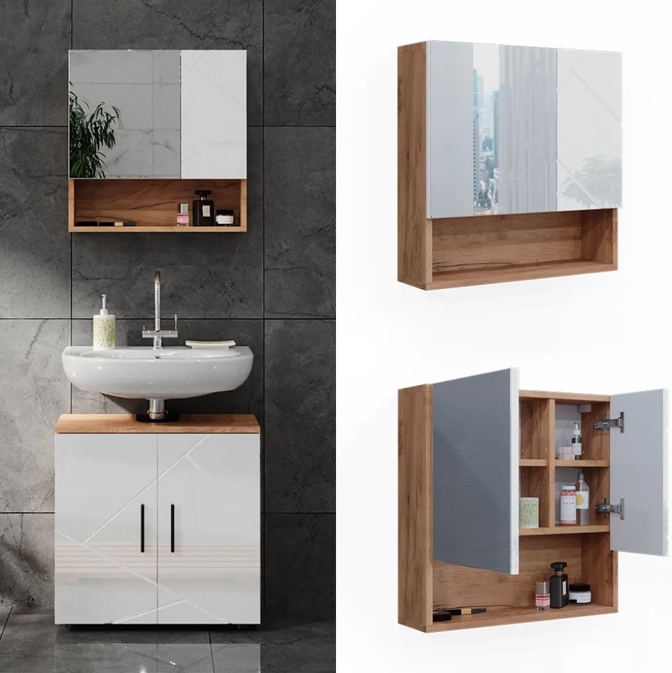 - MATERIAL: Der Badezimmer-Spiegelschrank besteht aus pflegeleichter Spanplatte 16 mm, mit einer Melaminharzbeschichtung