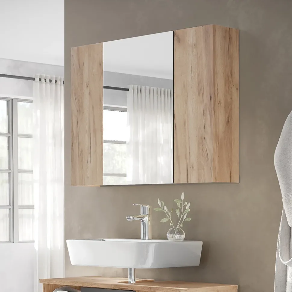 - MAßE: Der Badezimmerschrank mit Spiegel und Regalen misst Tiefe 16,4 cm, Breite 80 cm und Höhe 59,2 cm.