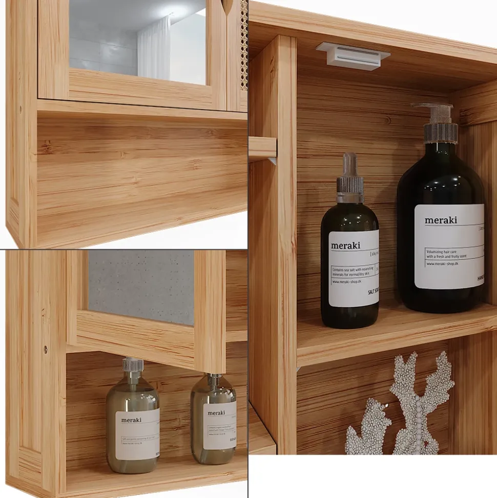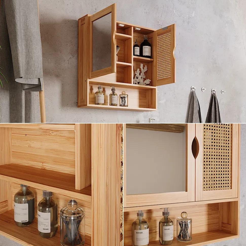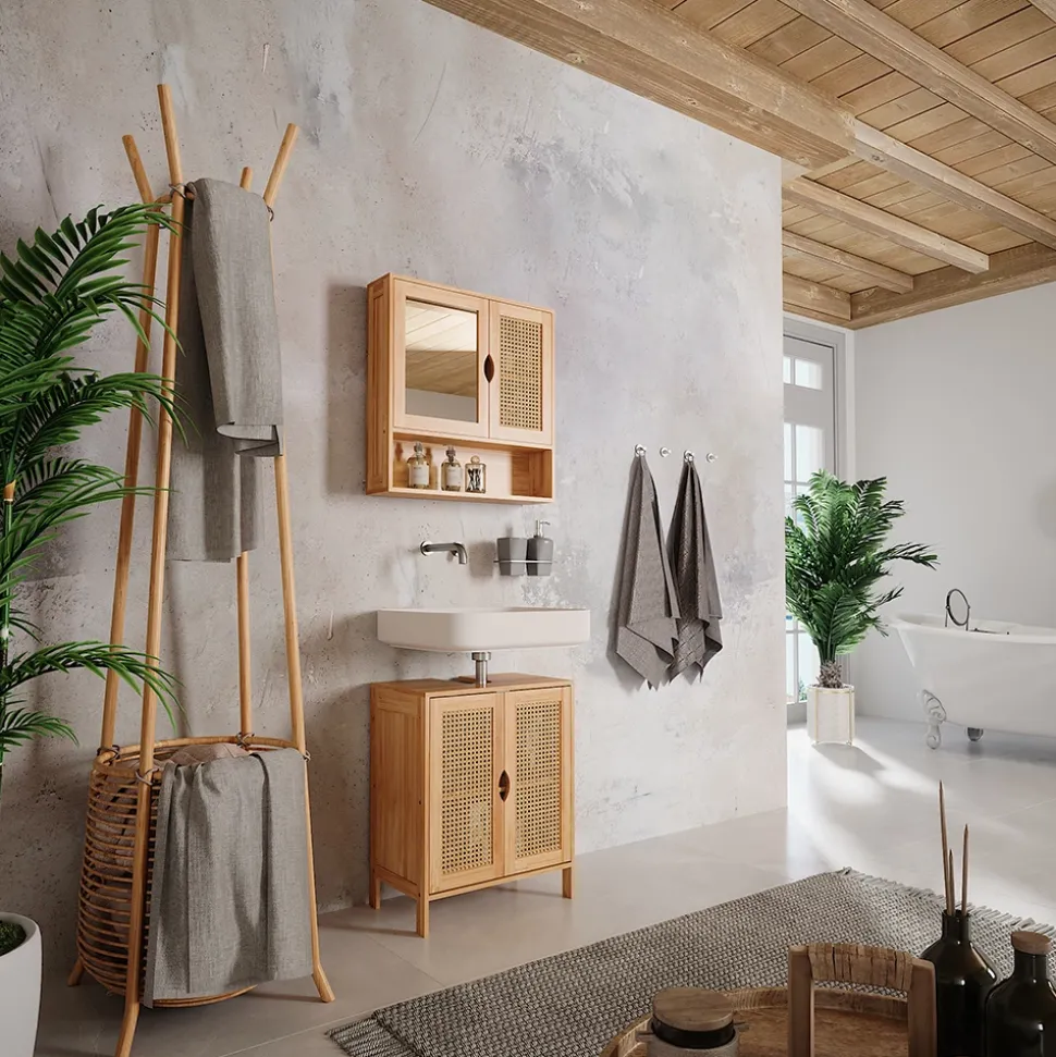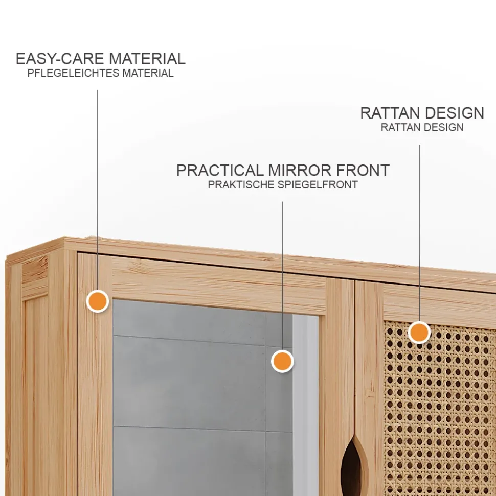- MATERIAL: Der Badspiegelschrank besteht aus pflegeleichtem bambus. Einige Bestandteile des Artikels sind aus Rattan gefertigt.