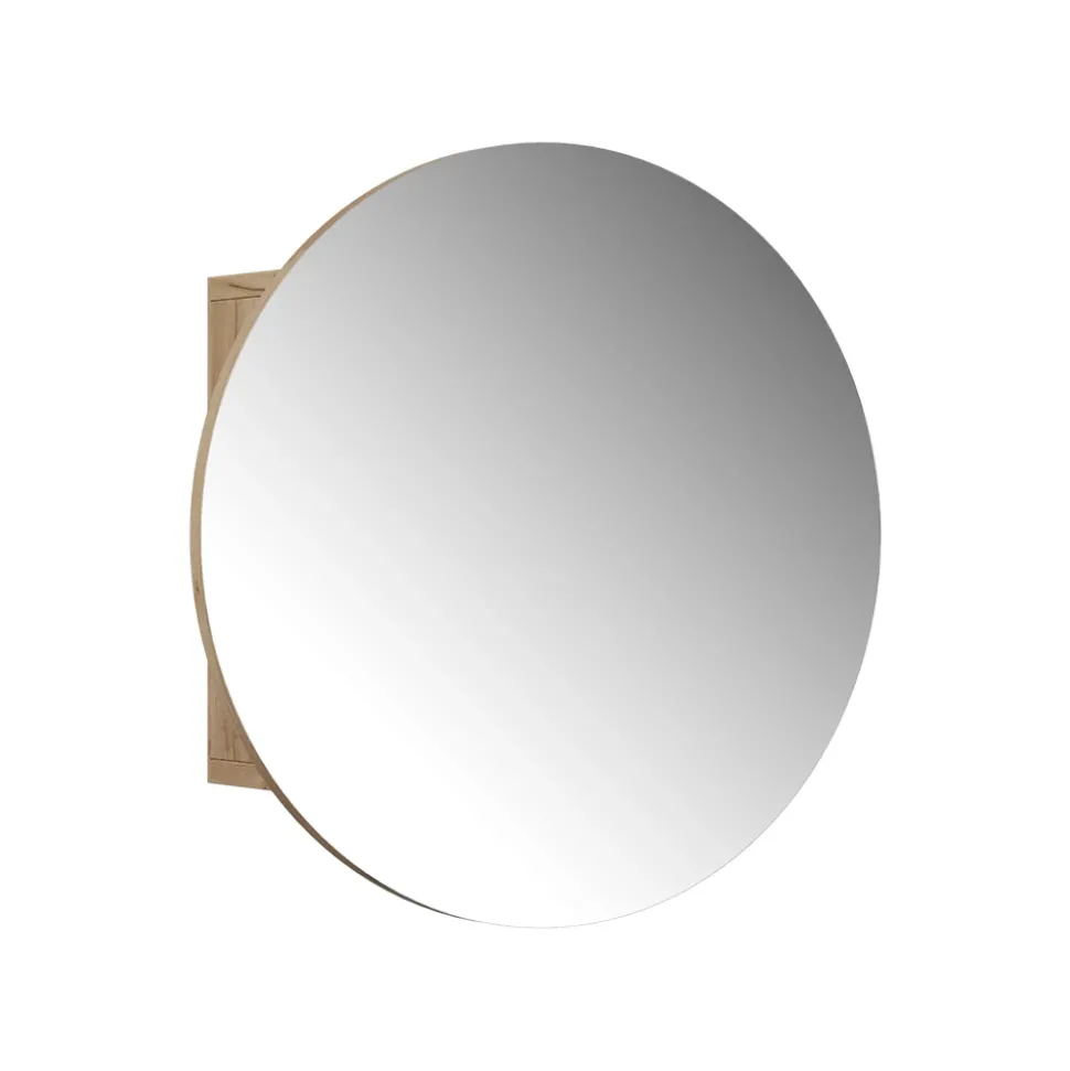 Der Spiegelschrank Loki überzeugt mit seinem modernen, runden Design und einer eleganten Antik-Optik. Er bietet nicht nur stilvolle Aufbewahrung, sondern setzt auch einen dekorativen Akzent im Badezimmer.