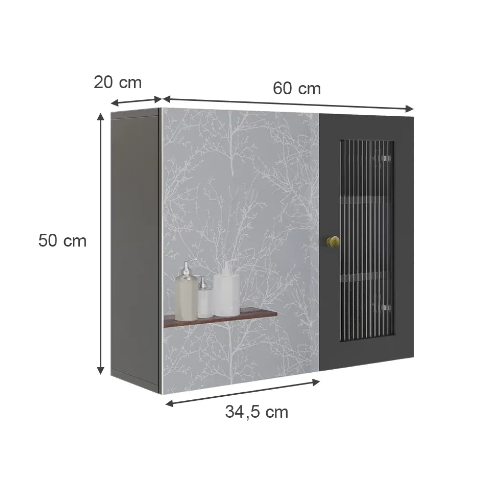 - MAßE: Der Badezimmerschrank mit Spiegel hat folgende Maße: Tiefe: 20 cm, Breite: 60 cm, Höhe: 50 cm. Die detaillieren Größen sind auf den Fotos angegeben.