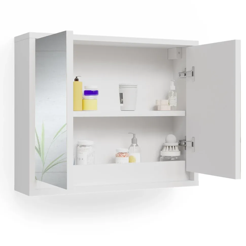 - Der Badezimmerspiegel bietet reichlich Stauraum für Ihre Badutensilien. Durch die zwei inneren Ablageflächen ist alles bestens organisiert.
