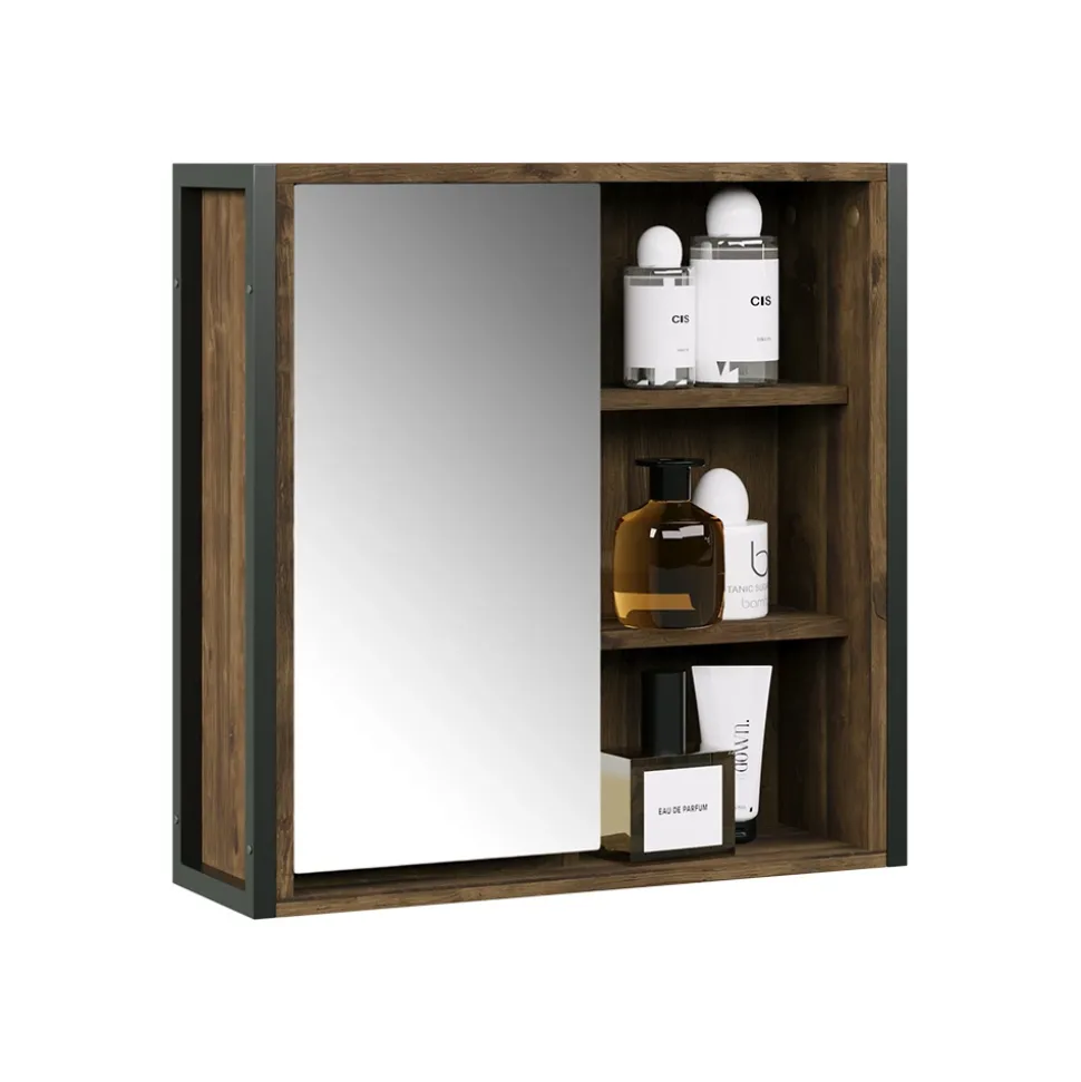 - MATERIAL: Der Badezimmerspiegelschrank besteht aus pflegeleichter Spanplatte. An den Seiten ist dieser mit Stahl mit Pulverbeschichtung verstärkt.
