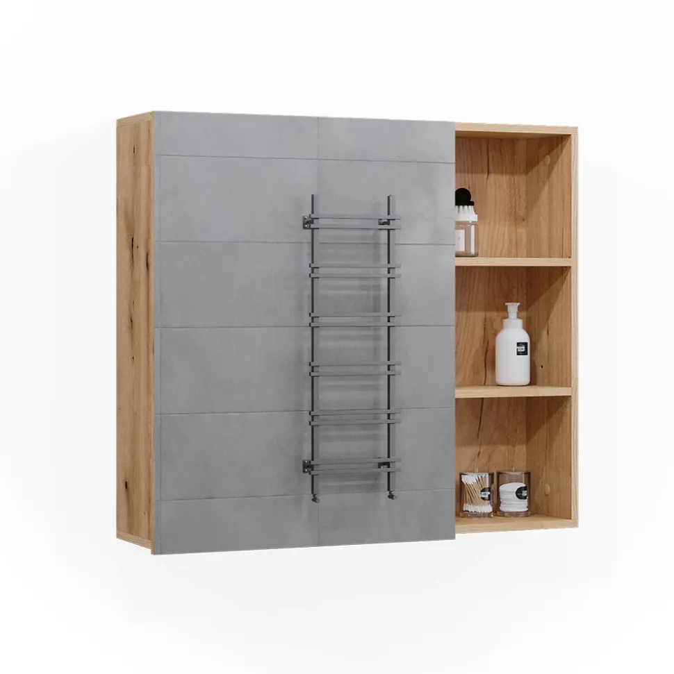 - Entdecken Sie den eleganten Vicco Spiegelschrank Rudi in Eiche-Evoke. Praktischer Badezimmerspiegel mit Ablage und Stauraum zur Badezimmeraufbewahrung – ideal auch als Badregal oder Kosmetikschrank.