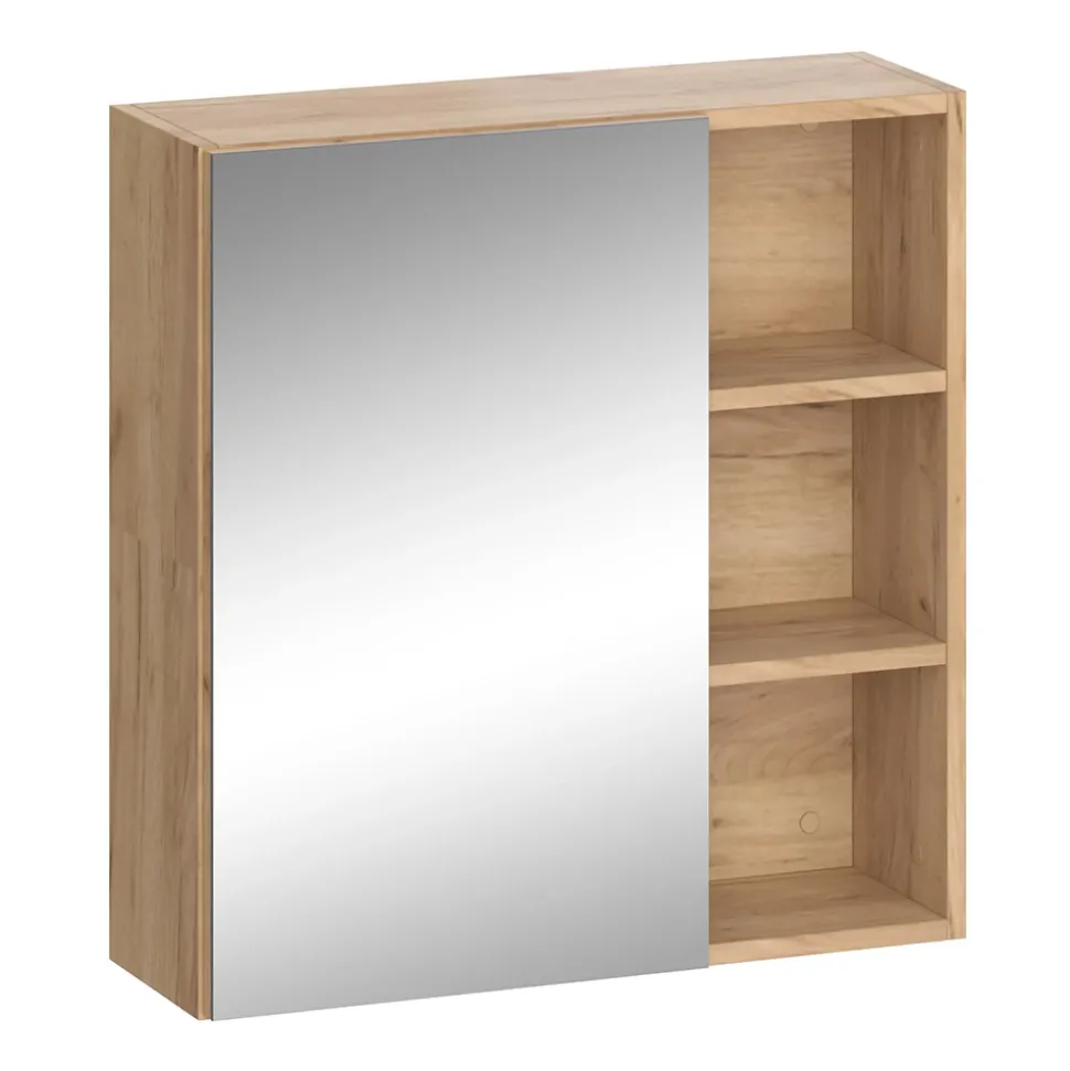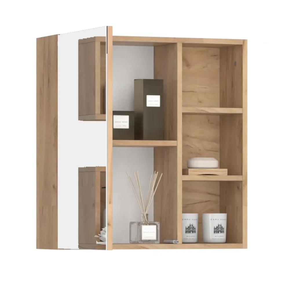 - Der Badezimmerspiegel ist ideal für kleine Badezimmer. Er hat sowohl offene als auch geschlossene Ablagefächer und bietet dadurch viel Stauraum.