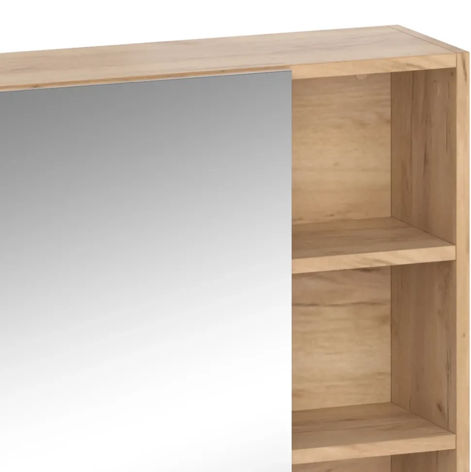 - MATERIAL: Der Badezimmer-Spiegelschrank besteht aus pflegeleichter Spanplatte 16 mm, mit einer Melaminharzbeschichtung. Einige Bestandteile des Artikels sind aus Glas gefertigt