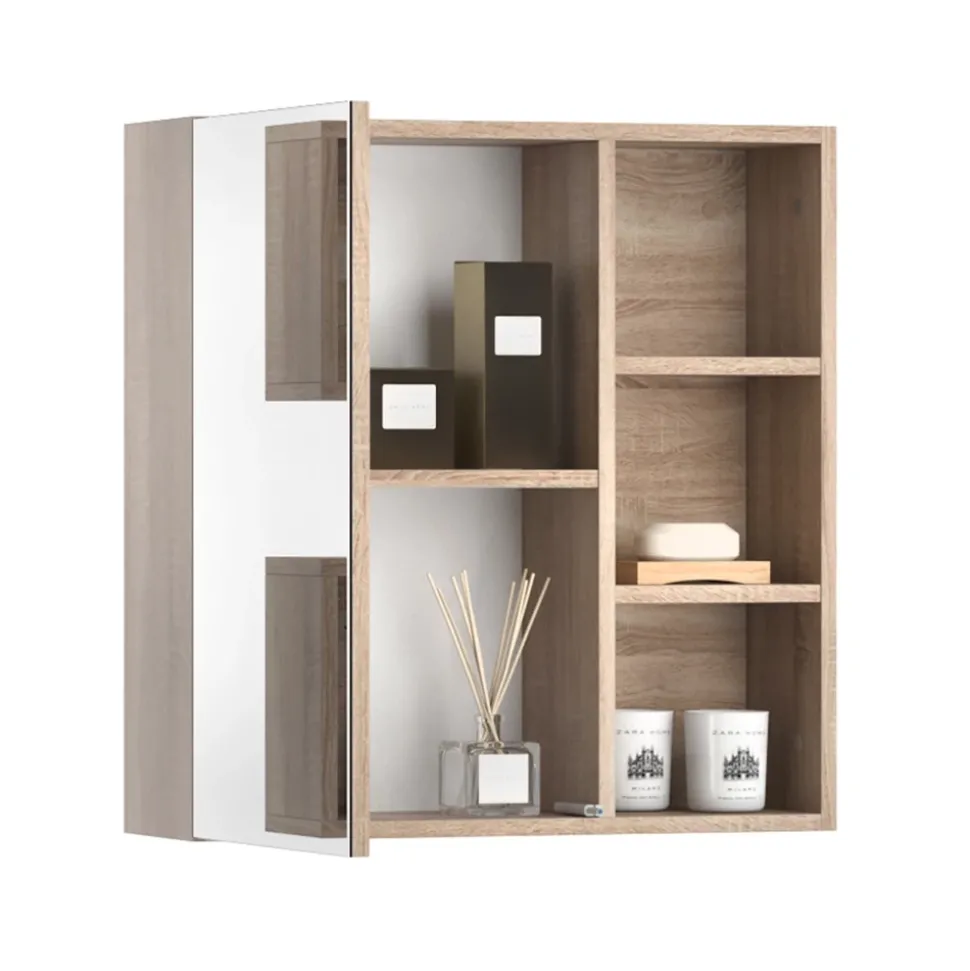 - MATERIAL: Der Badezimmer-Spiegelschrank besteht aus pflegeleichter Spanplatte 16 mm, mit einer Melaminharzbeschichtung. Einige Bestandteile des Artikels sind aus Glas gefertigt