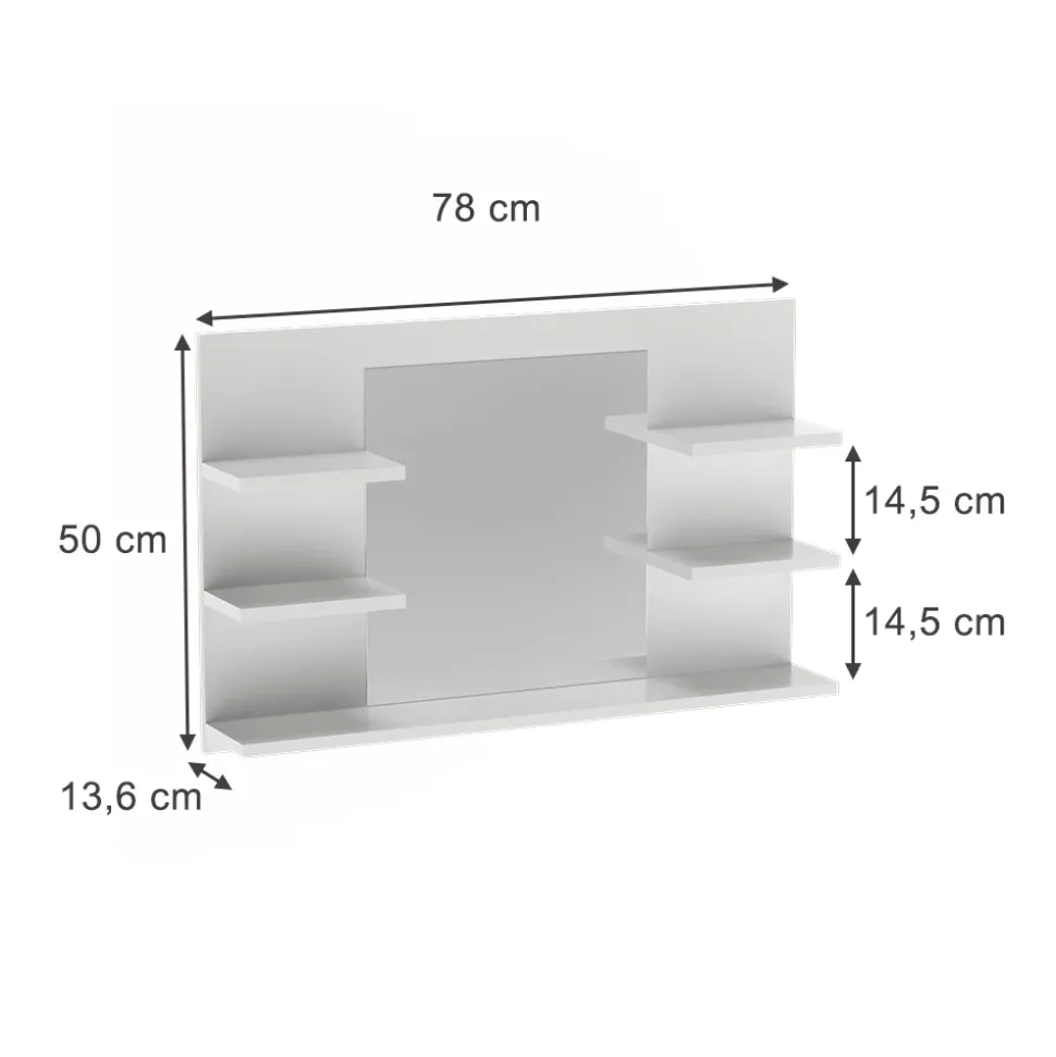 - MAßE: Der Badezimmerschrank mit Spiegel und Regalen hat folgende Maße: Tiefe: 13,6 cm, Breite: 78 cm, Höhe: 50 cm.