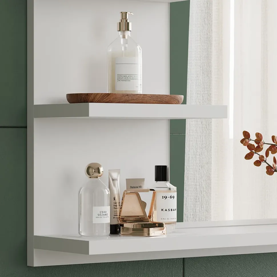 - Der Badezimmerspiegel überzeugt mit modernem Design und großzügigem Stauraum – ideal, um Pflegeprodukte ordentlich zu verstauen. Ein praktisches und stilvolles Accessoire für jedes Badezimmer.