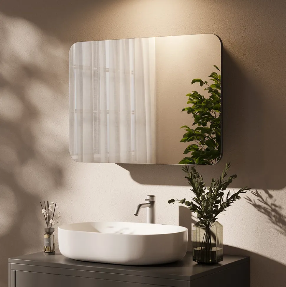 - Der Badezimmerspiegel besticht durch sein modernes Design und verfügt über ein praktisches Regal. Zudem bietet er die Möglichkeit zur einfachen Montage sowohl horizontal als auch vertikal.