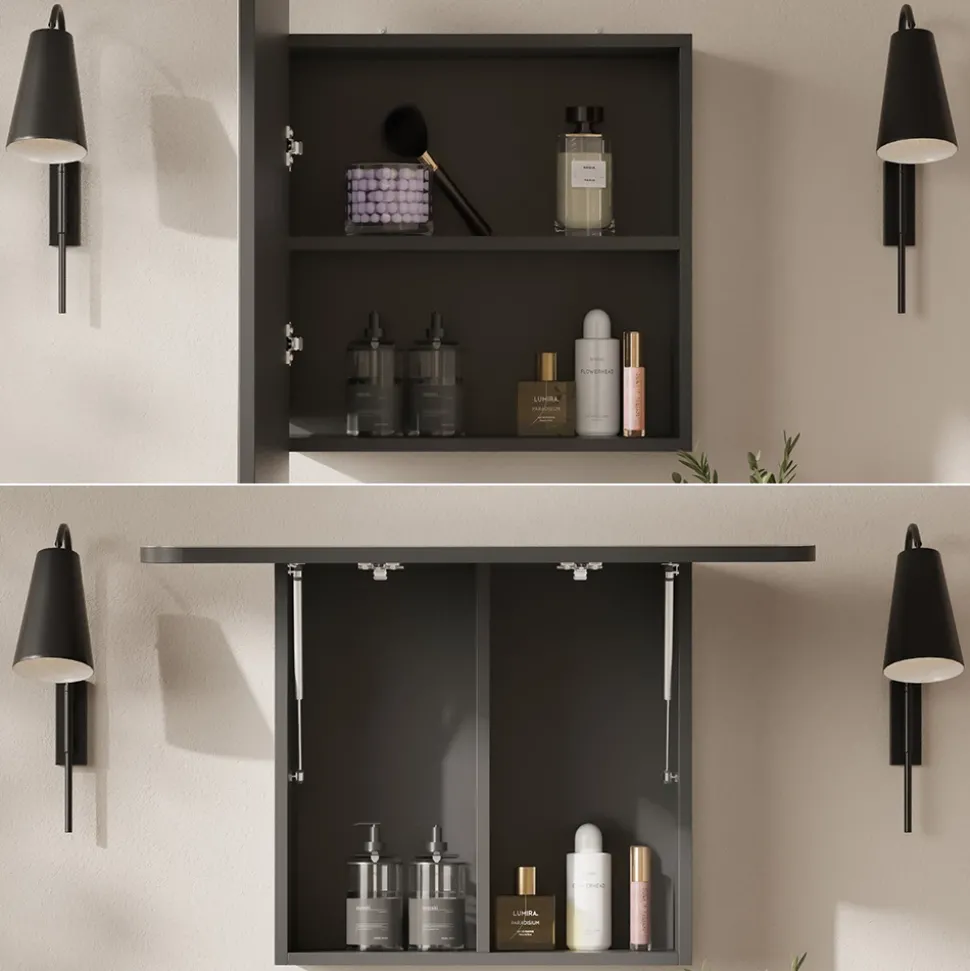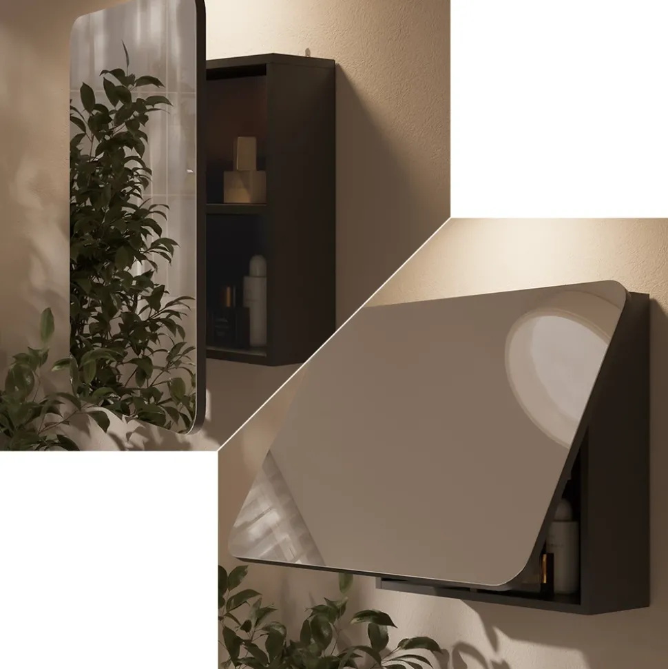 - MATERIAL: Der Badezimmer-Spiegelschrank besteht aus 16 mm Spanplatte mit Melaminharzbeschichtung und Glas.