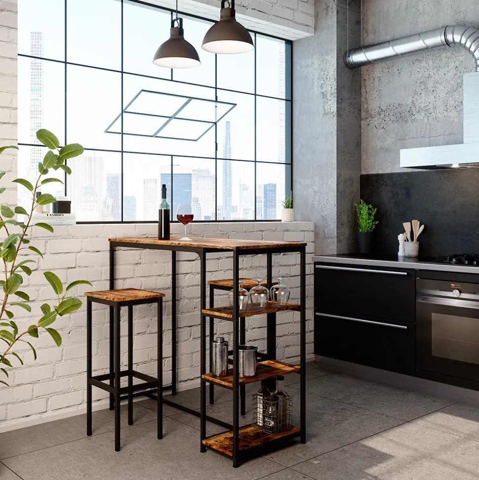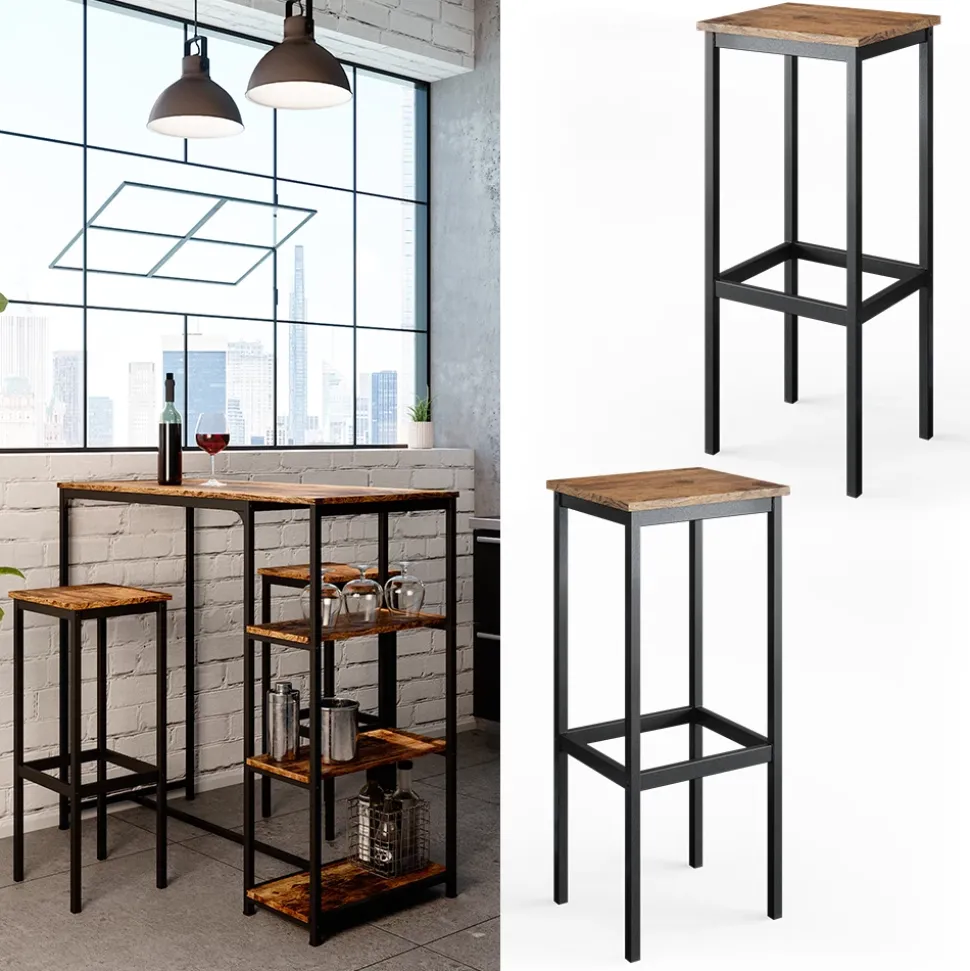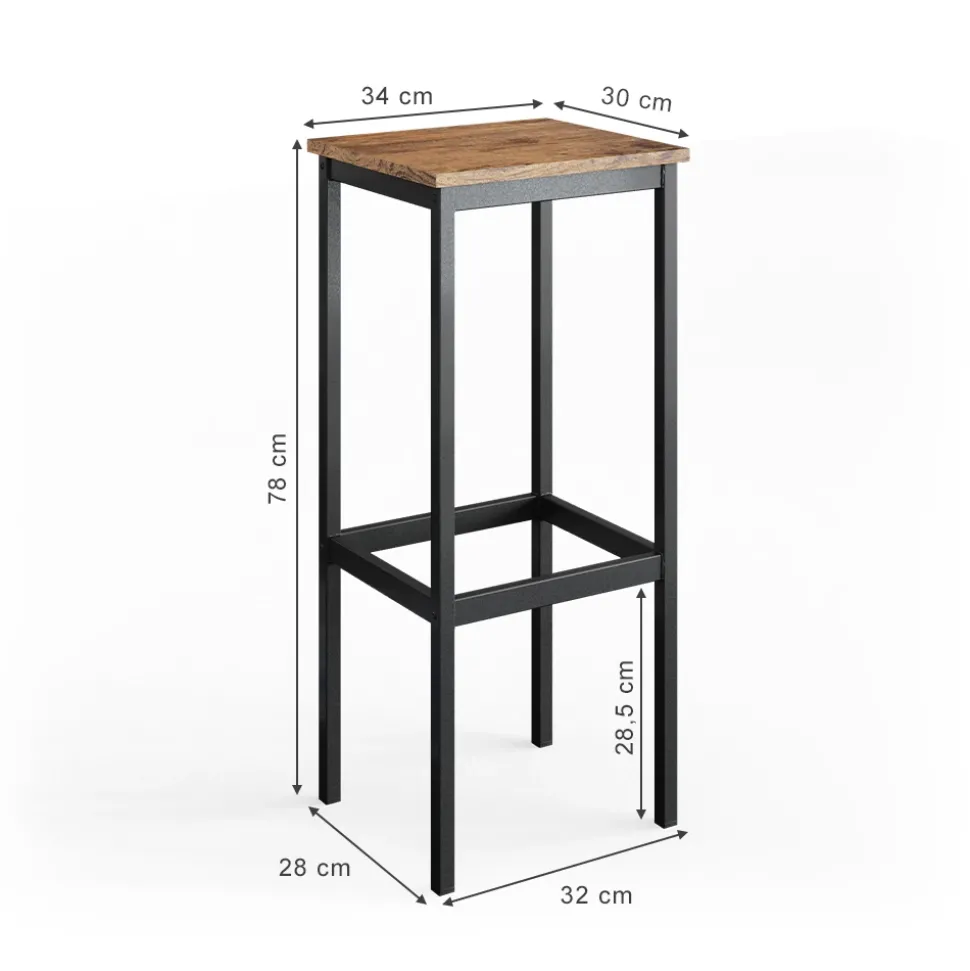 - Sicher und leichter Hocker für die Bar mit Beinhalterung und Metallfüßen. Perfekt für Bar in Eiche rustikal/Schwarz.