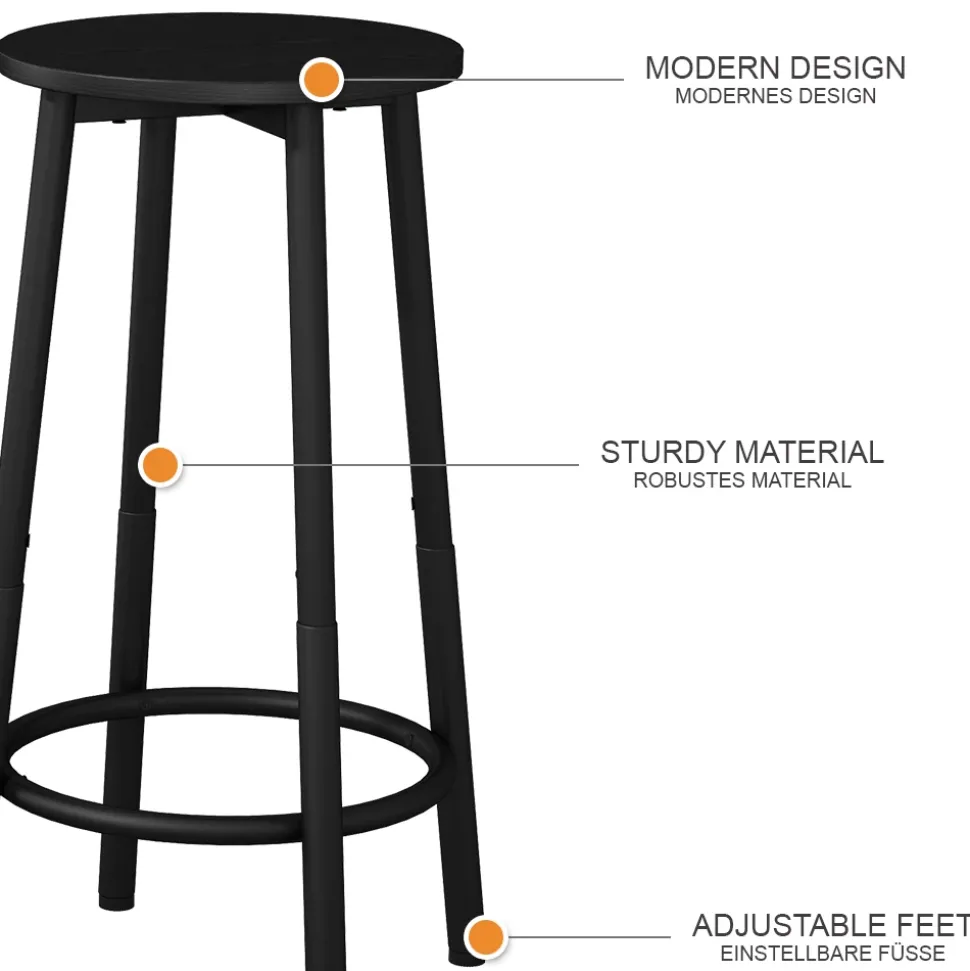 - MATERIAL: Das Barhocker 2er-Set besteht aus pflegeleichter, melaminharzbeschichteter 16 mm Spanplatte. Die Stuhlbeine sind aus Edelstahl gefertigt.