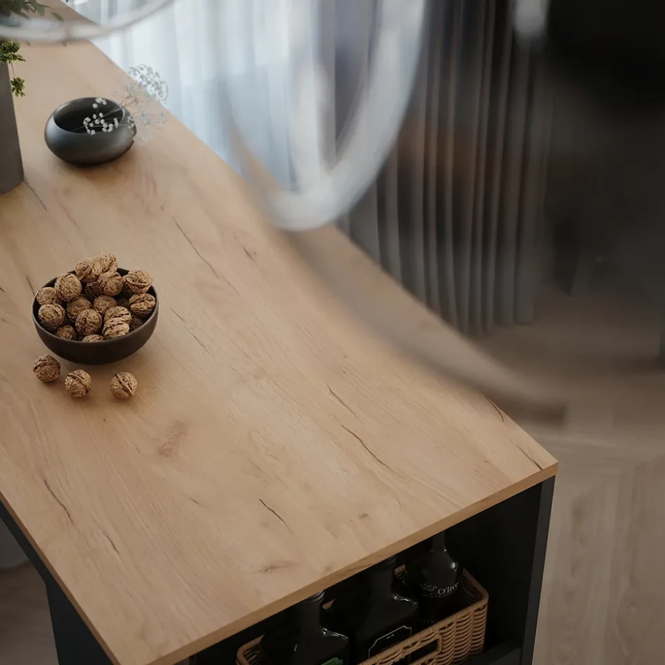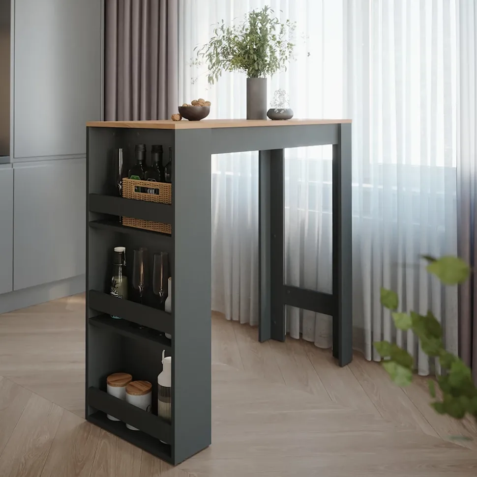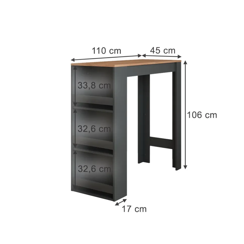 - Der stilvolle Bartresen für das Esszimmer eignet sich perfekt als Tresentisch mit Regal oder als Stehtisch für die Küche. Ein praktisches Möbelstück für gesellige Runden und gemütliche Mahlzeiten.