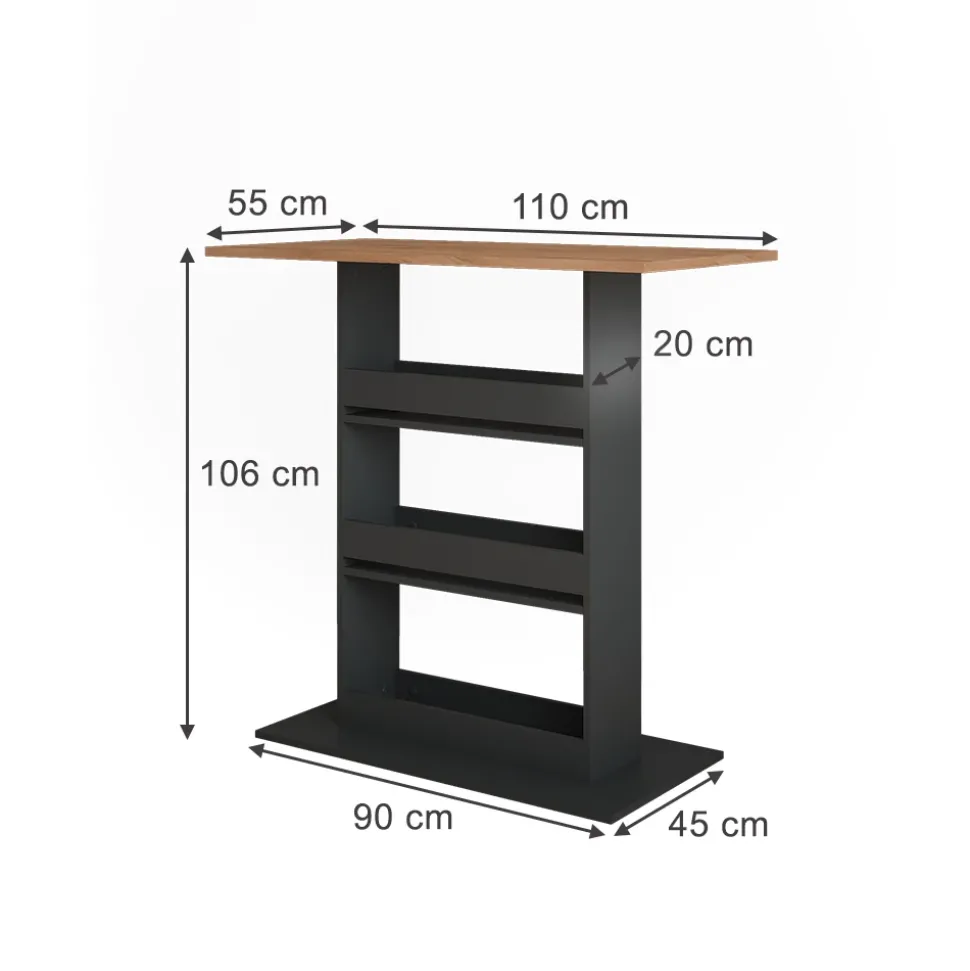 - MAßE: Der Stehtisch für die Küche hat folgende Maße: 55 cm Tiefe, 110 cm Breite und 106 cm Höhe.