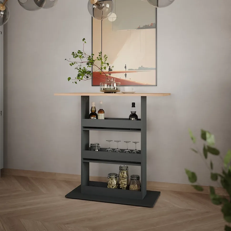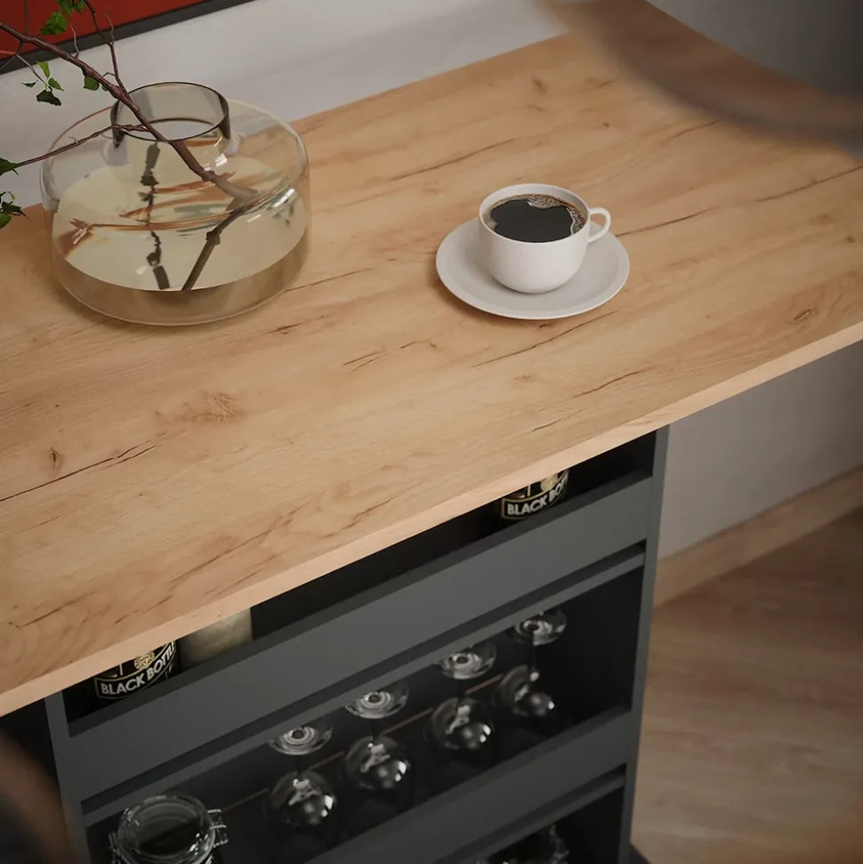 - Der Bartresen für das Esszimmer überzeugt mit modernem Design und hoher Funktionalität. Er bietet nicht nur ausreichend Sitzplatz, sondern auch praktischen Stauraum für Gläser und Flaschen.