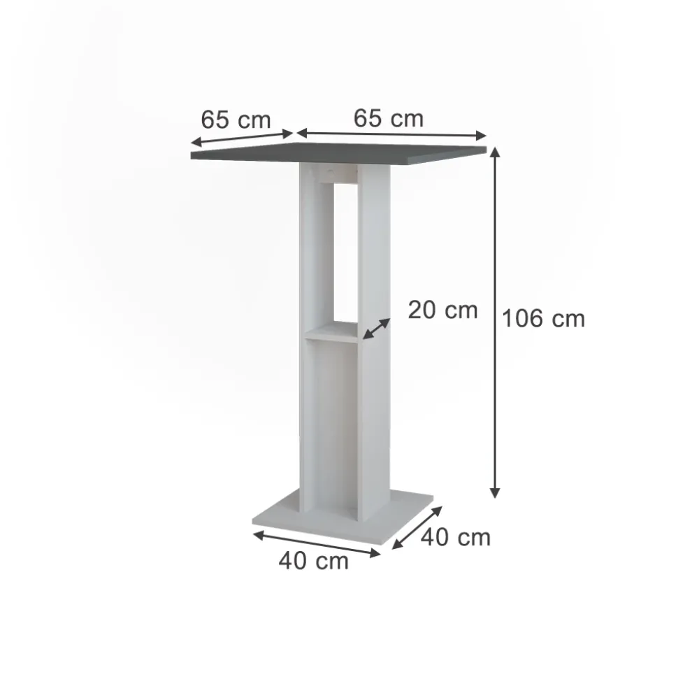 - MAßE: Der Stehtisch für die Küche hat folgende Maße: 65 cm Tiefe, 65 cm Breite und 106 cm Höhe.