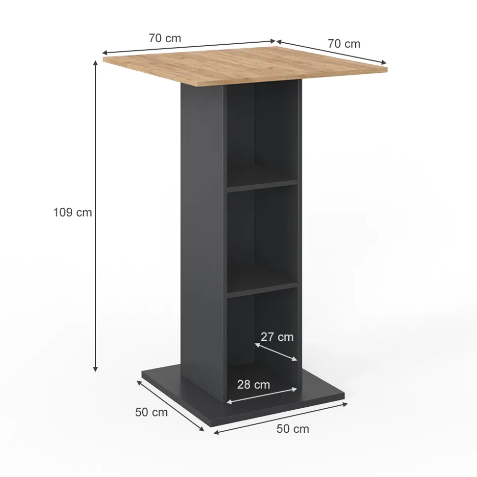- MAßE: Der Stehtisch für die Küche hat eine Breite von 70 cm, eine Höhe von 109 cm und eine Tiefe von 70 cm. Alle detaillierten Größen sind auf den Fotos angegeben.