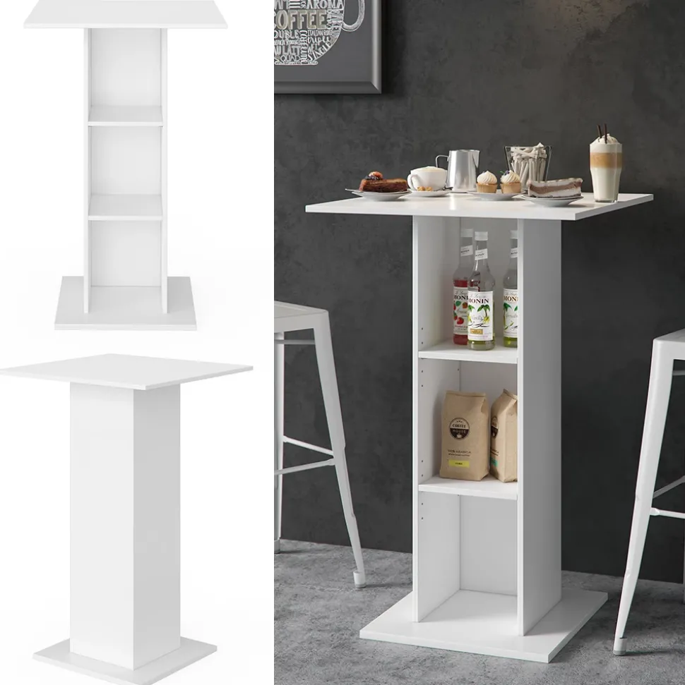 - MATERIAL: Der Tresentisch mit Regal besteht aus pflegeleichter Spanplatte 16 mm, mit einer Melaminharzbeschichtung