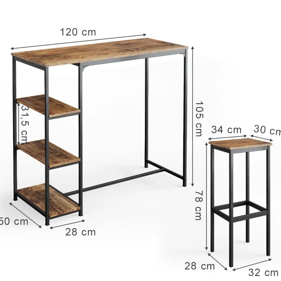 - MAßE: Der Stehtisch hat eine Breite von 50 cm, eine Höhe von 105 cm und eine Länge von 120 cm. Die detaillierte Größe aller Teilen des Setes sind auf den Fotos angegeben.