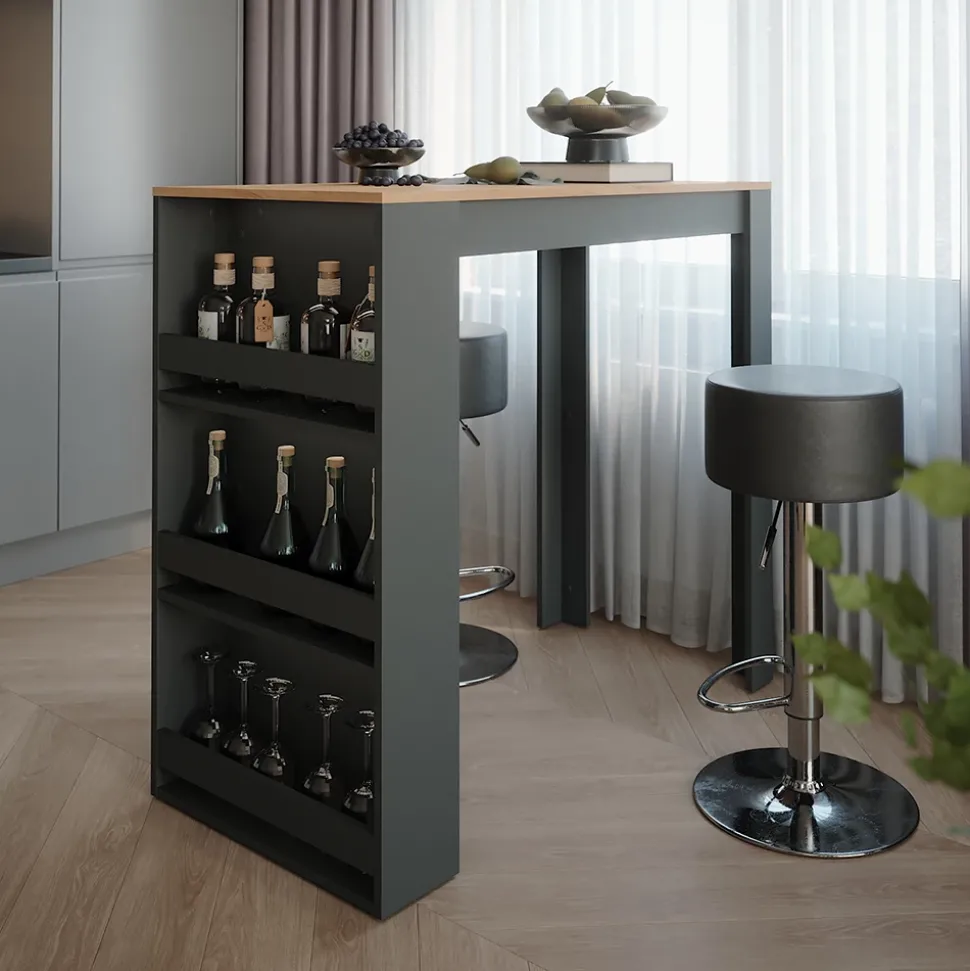 - MATERIAL: Der Bartisch besteht aus 16 mm starker, pflegeleichter Spanplatte.